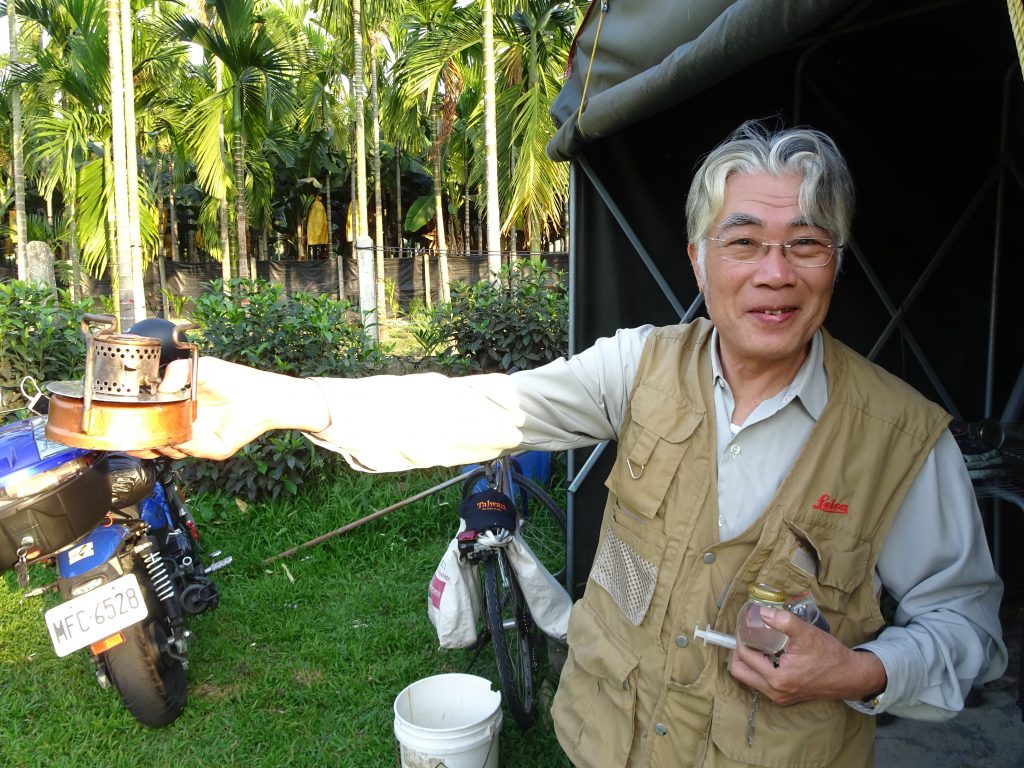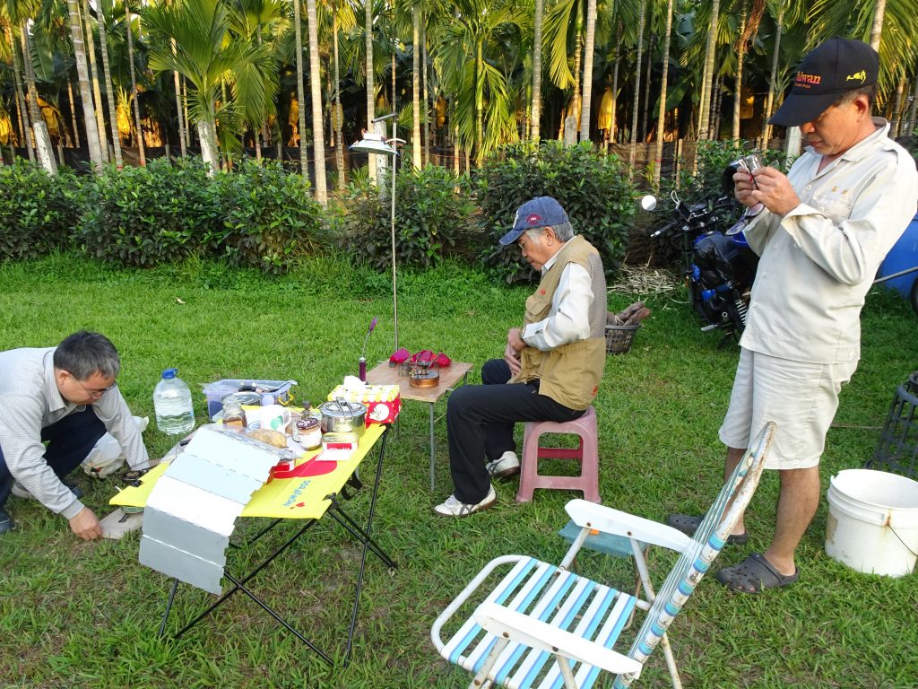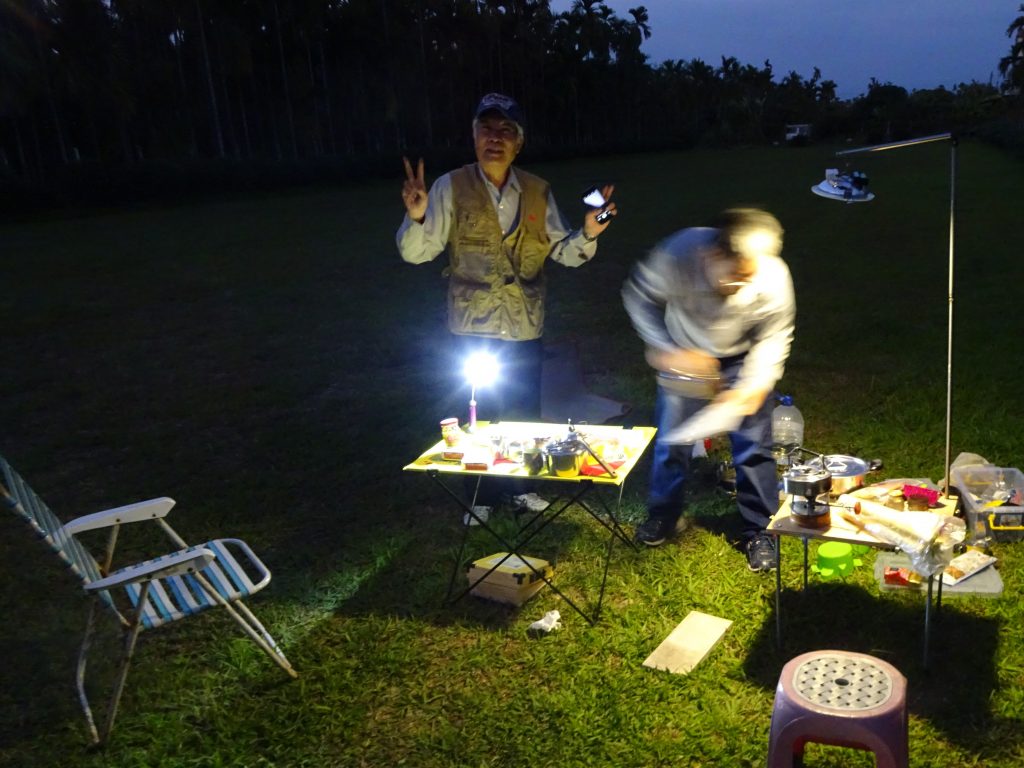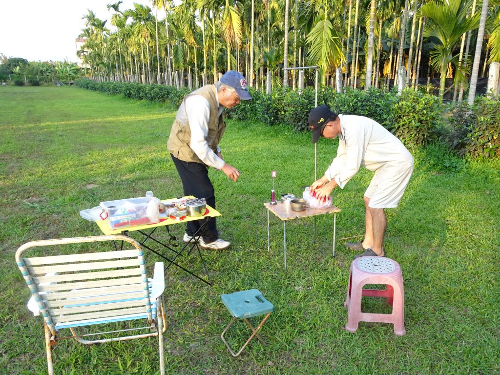 The food was good, the friends were nice, the garden atmosphere pleasant (except the mosquitos who had the night-shift after the flies), but it was hard to integrate me in the conversation which mainly ran in Taiwanese. The friends know each other since around 30 years because of their common interest in outdoor activities and they would stay in the garden overnight. Mark went home with me to get some things to join his friends for camping and I sat down to write what you now read.
