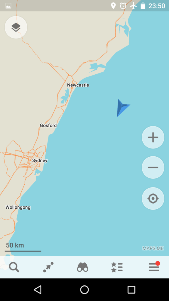 At midnight, the officer at the bridge had told me that it is no use waiting for passing by Sydney. It would be even later than 1:00 in the night (as I first had been told), maybe around 4:00 and the ship will be too far from the coast to see anything.