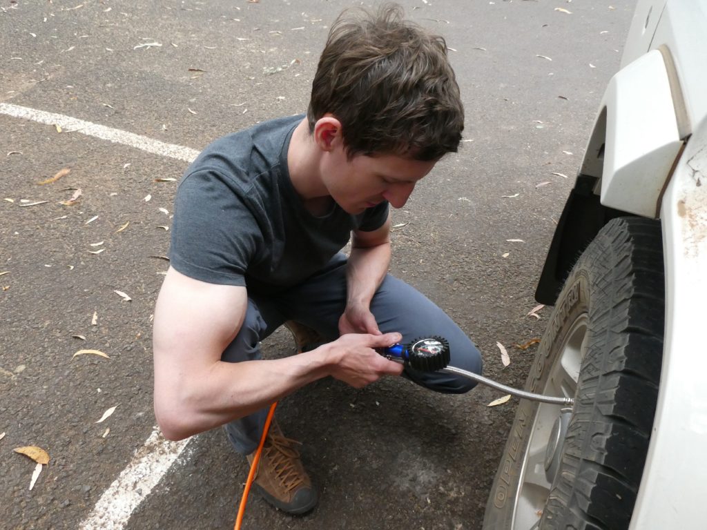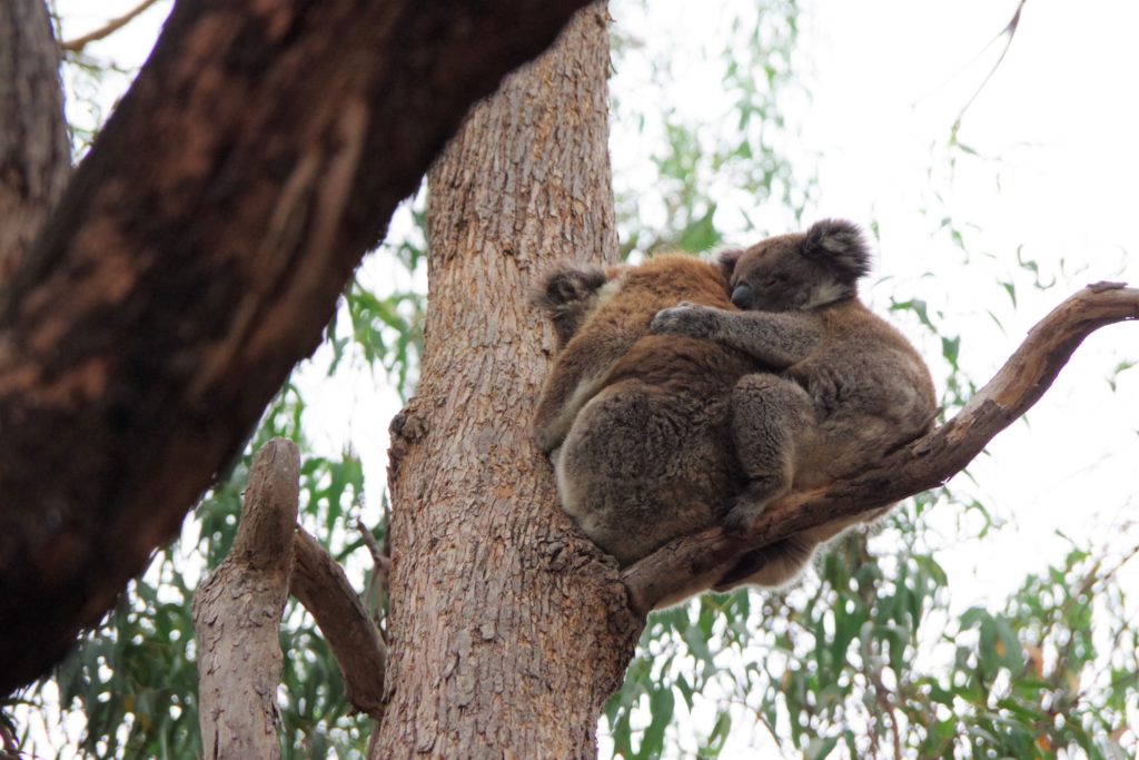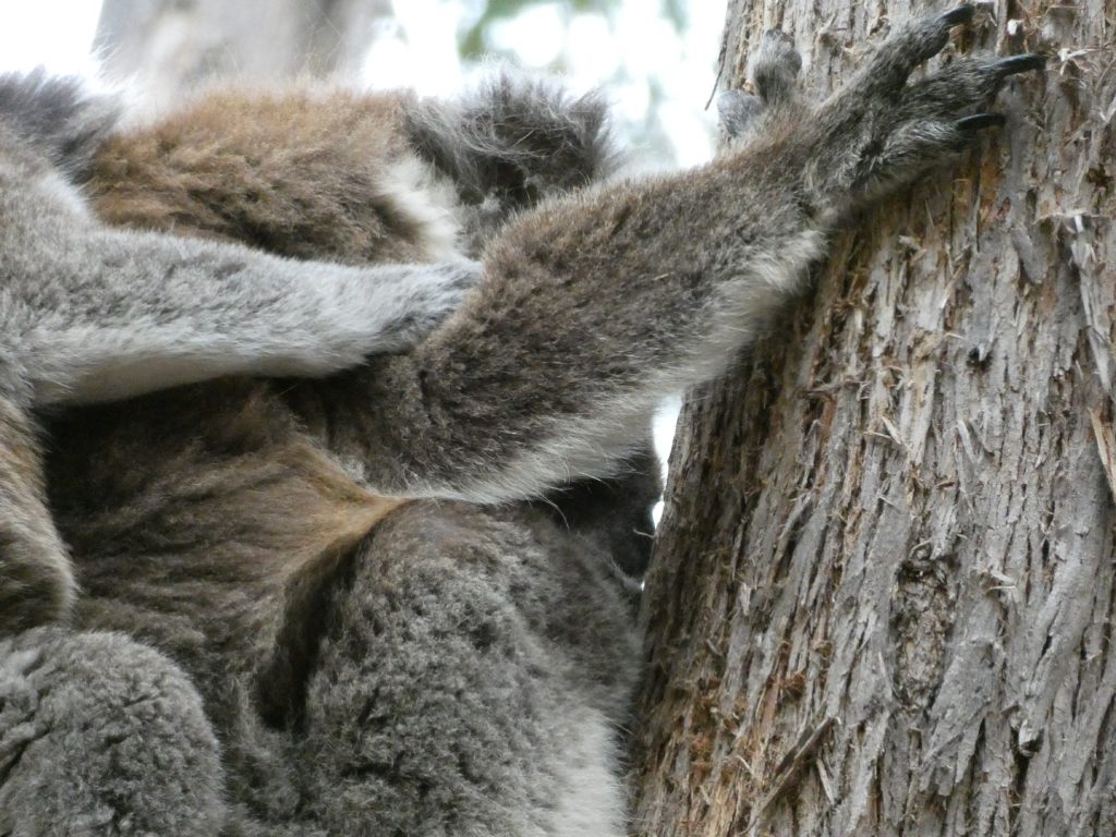 Meanwhile Doron pumped back air in the tyres that should be softer for the corrugated roads to be less destructive but now we would go mainly on sealed roads. When we wanted to leave Markus couldn’t because of people taking photos up to a tree and he saw Koalas. So, we joined the photographers with three more cameras.