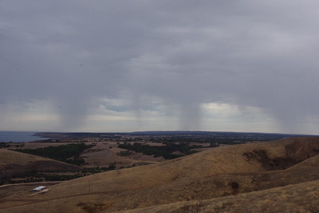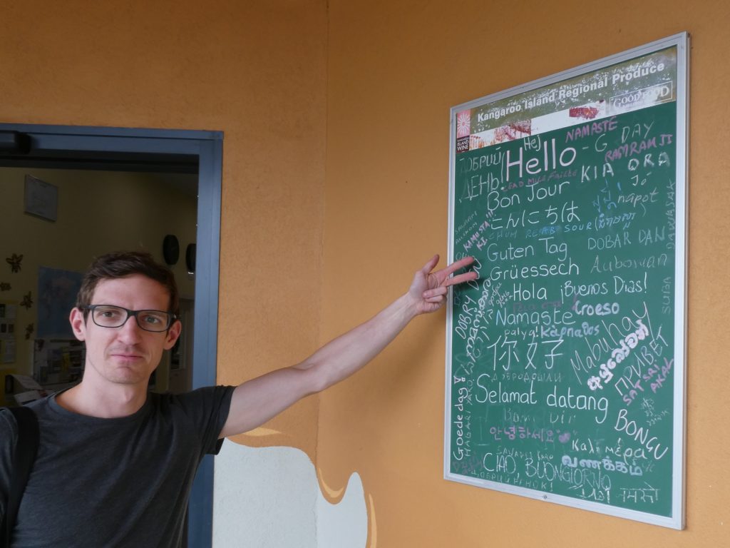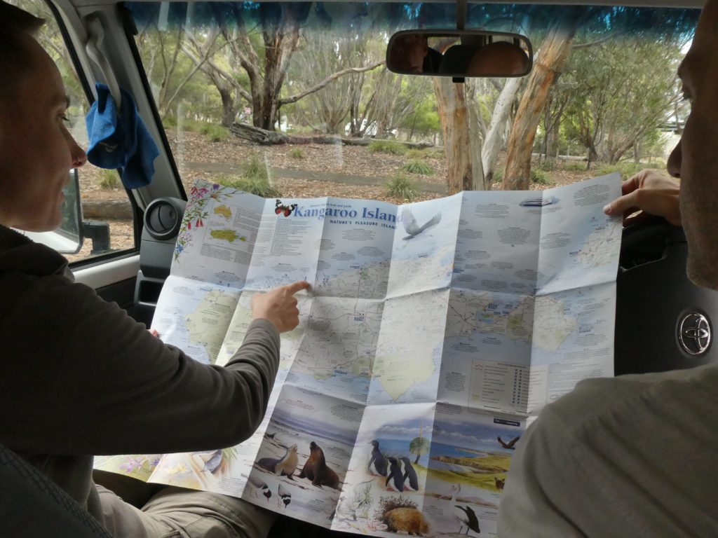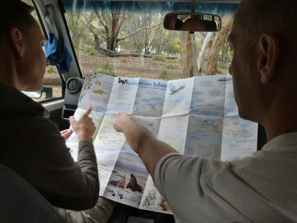 We went for lunch while we waited for the tyre. M&M had a veggie salad and D+M shared a pizza, the only other veggie option in “the best restaurant” of Kingscote. We didn’t take S or M or L, we took P without knowing what it stands for. It was pretty big, and P means “party”. So, it was no problem to be full even when sharing it. To complete our waiting time, we went to a café, again the best of Kingscote and even Doron took an espresso although he most of the time before refused to drink any coffee, because he has very high expectations. He was not disappointed but also not in 7th heaven of coffee drinking.