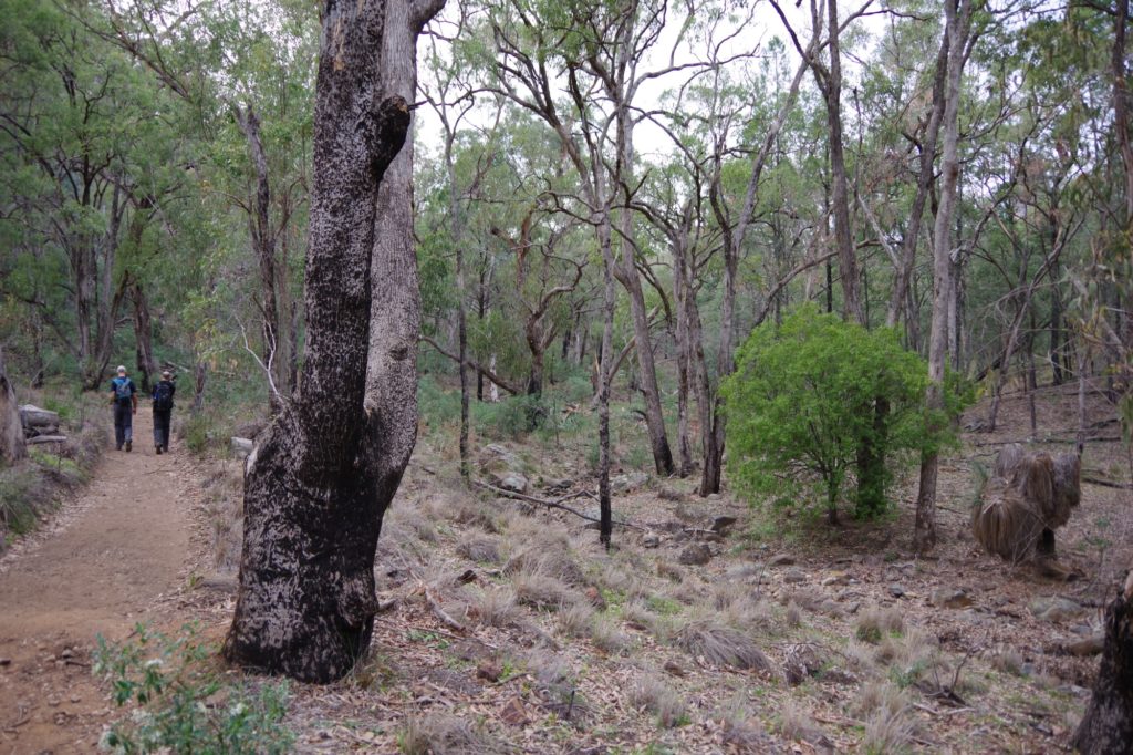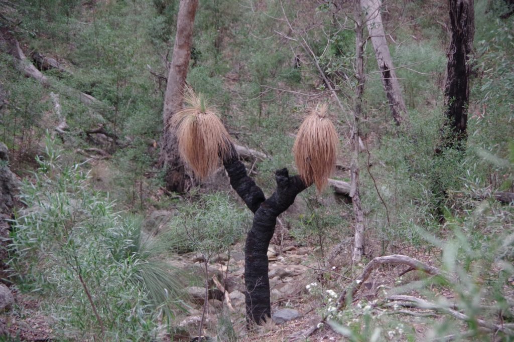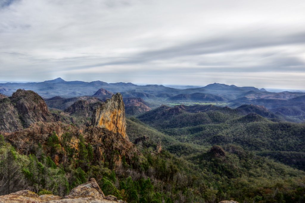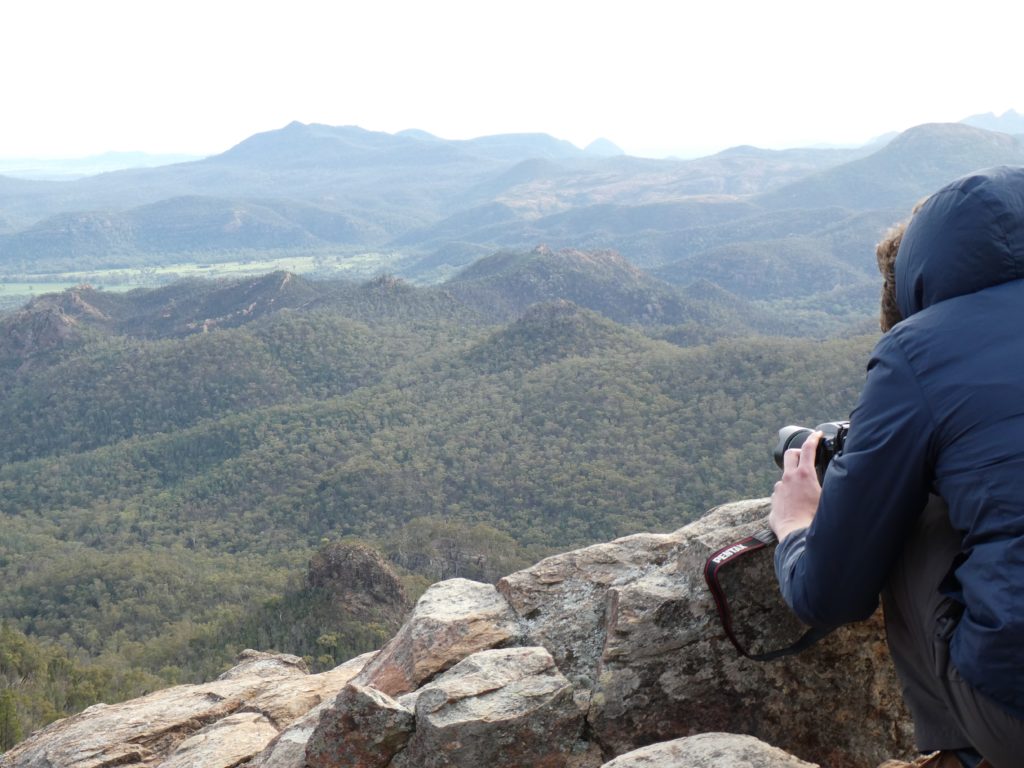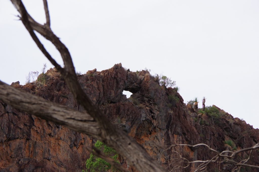 Then the last long drive of this trip started with a stop at the Wollomombi falls. They were dry and the outlook was closed because of construction work. We went on to the campsite of the day in the New England National Park. First it slowly became greener, and the more we went up the more it became wet and cooler. We managed to set up the tent in a dry place in the Thungutti camping area before it became dark
