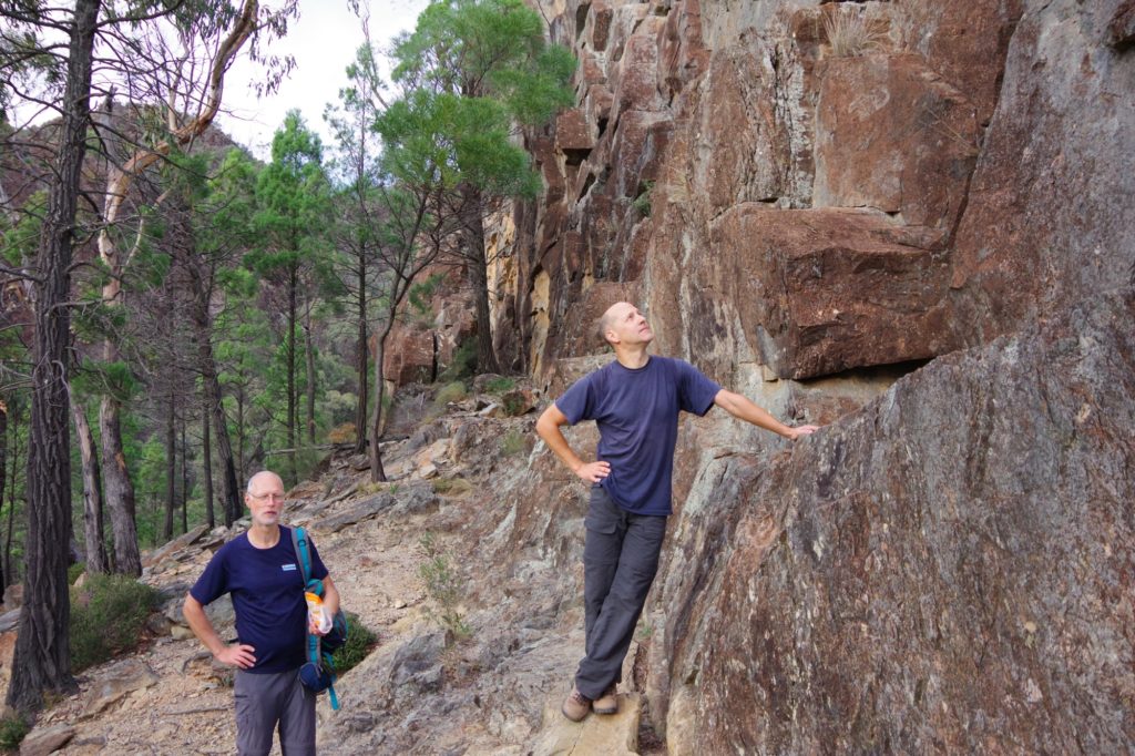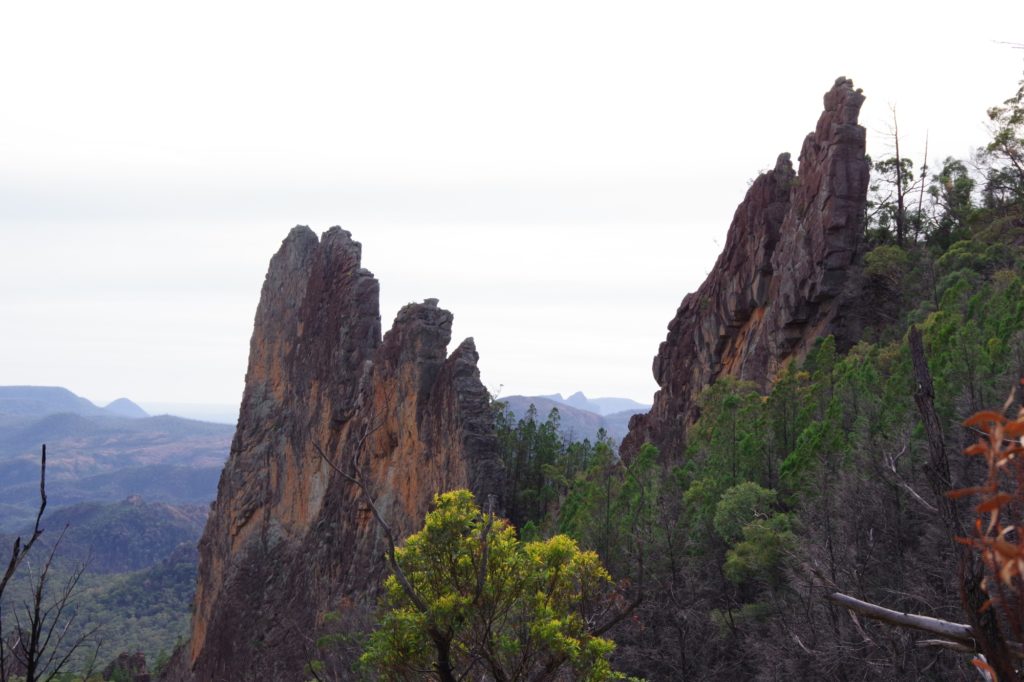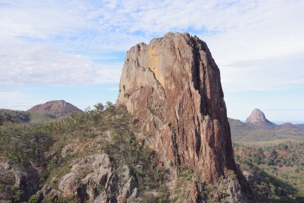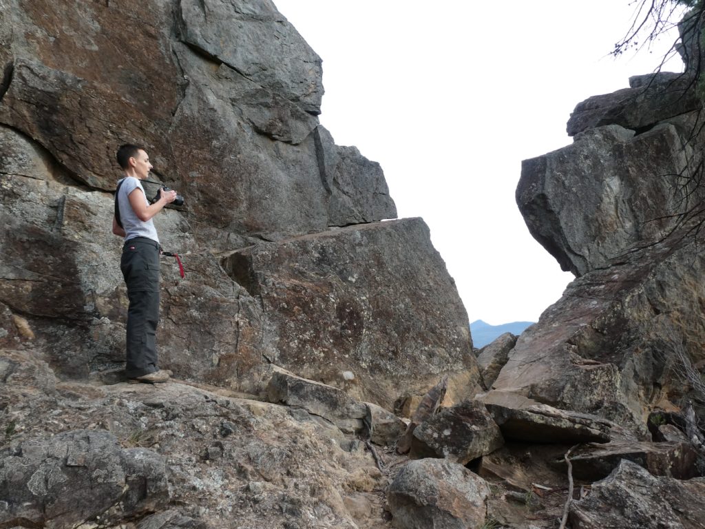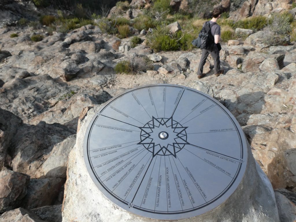 and the other M’s joined one after the other, so we left at 6:20 and started a 4 hours hike on the Grand High Tops Circuit. On top, there are some iconic rocks like the bread-knife peak, and you get a great view in all directions. We found a place without wind to have a snack before going down.