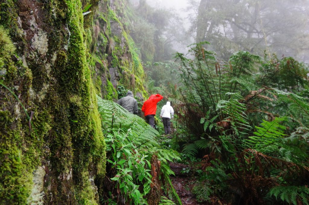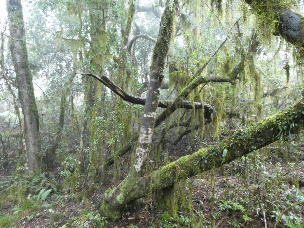 – today into very dense fog and on the track, we could see what vegetation fog and rain form.