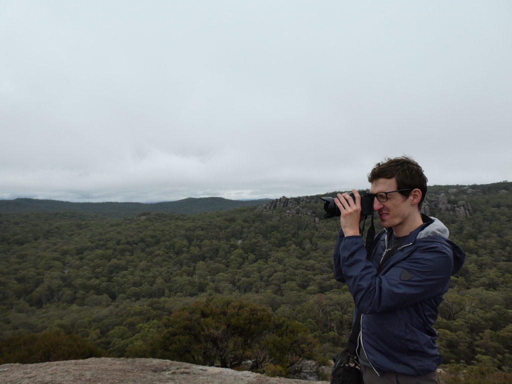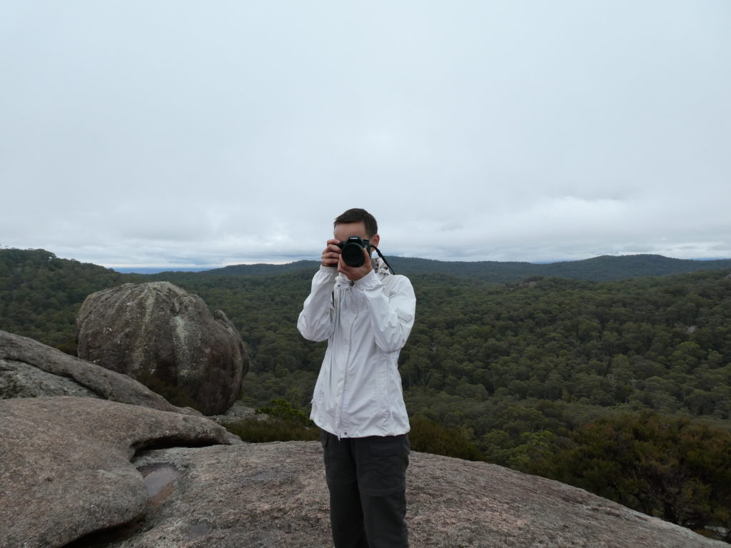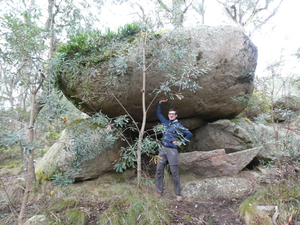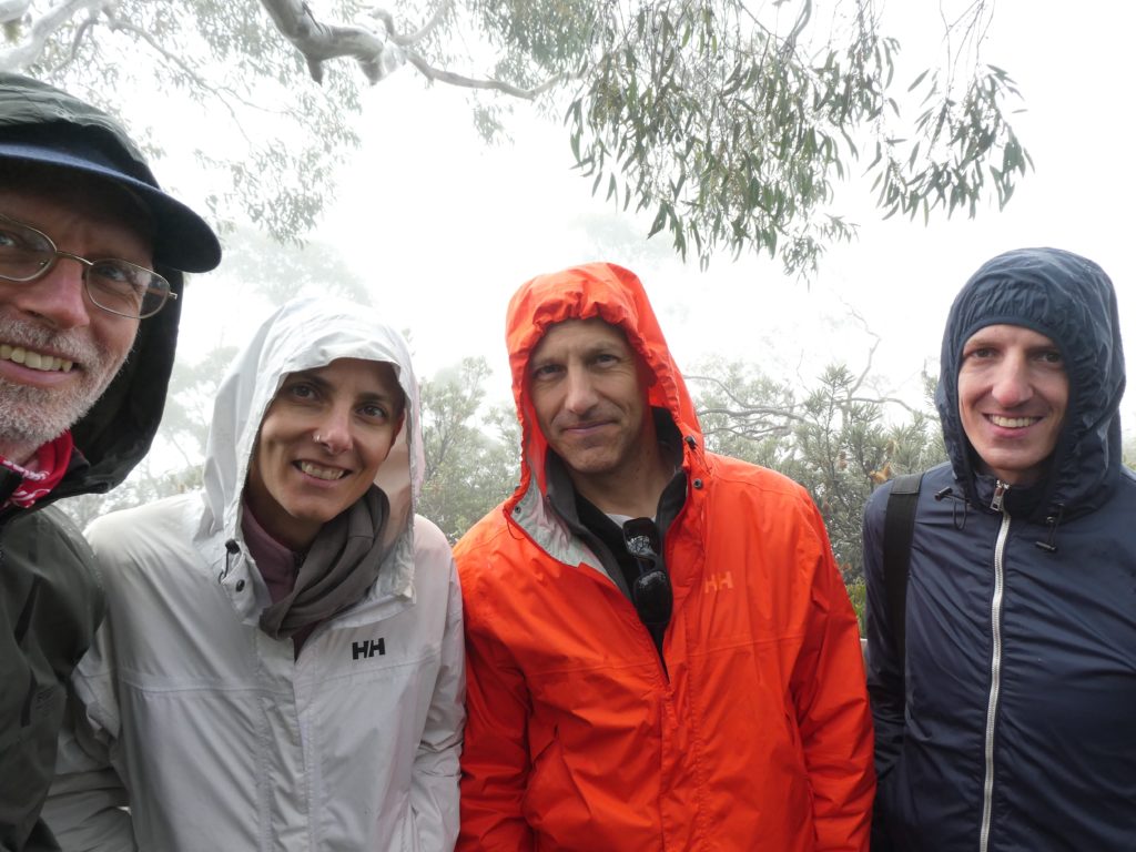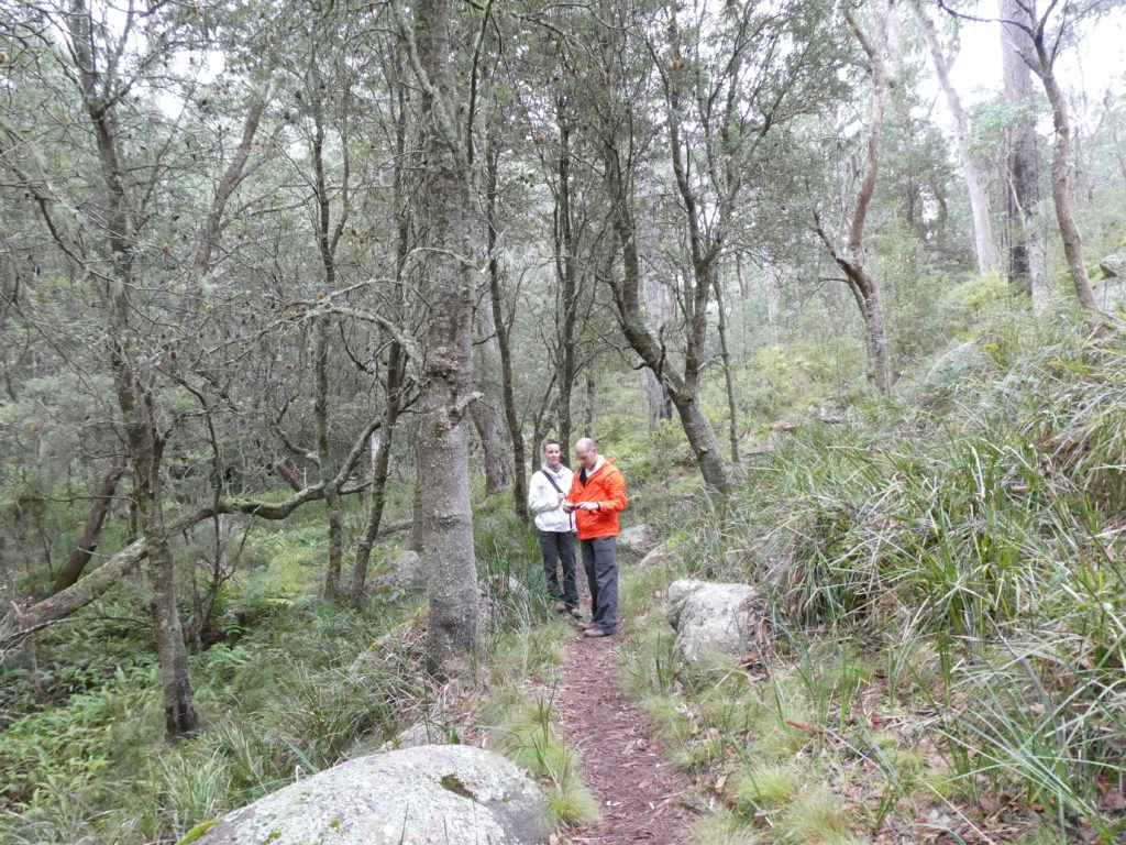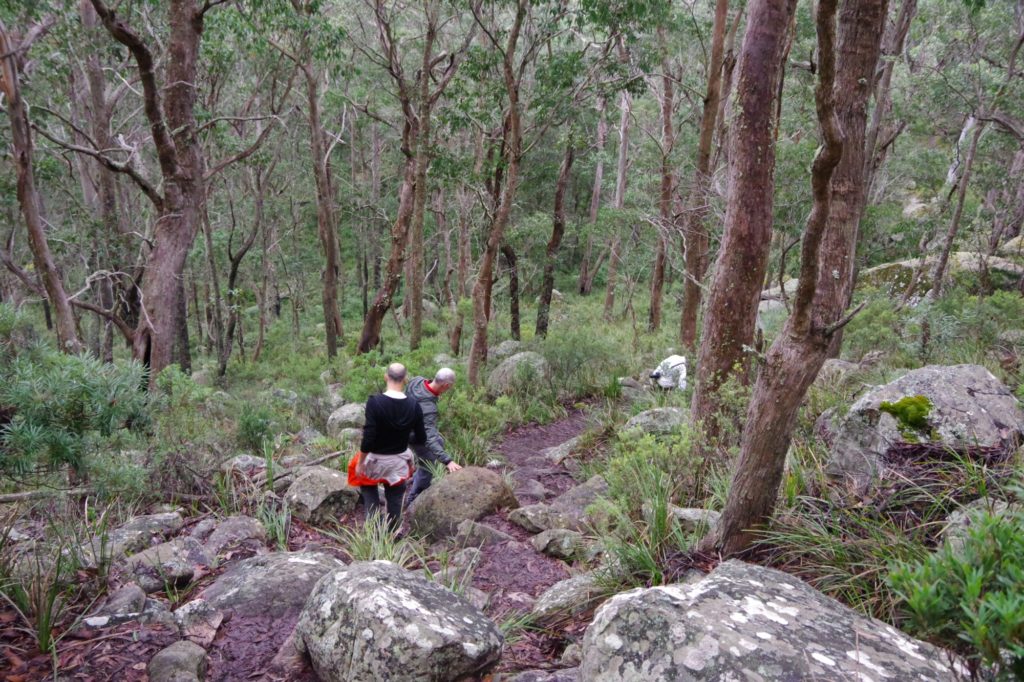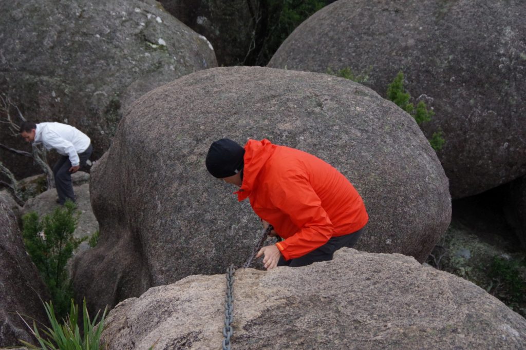 In the nearby village Ebor we had a small lunch with scones and veggie burgers and tried to find a place to refill the gas bottle but couldn’t find, so we went on to the next camping place on our list, the Barokee rest area, and pitched the tent, before we started the walk in Cathedral Rock National Park in a flat and pleasant area. After a while it became more and more challenging, in the end especially for people with fear of heights, like 3 of us (2xM+1D). But we all wanted to get to the top, being well aware of the difficulties ahead of us when it is about getting down again. On top, we shortly enjoyed the view, before bravely finding our way down.