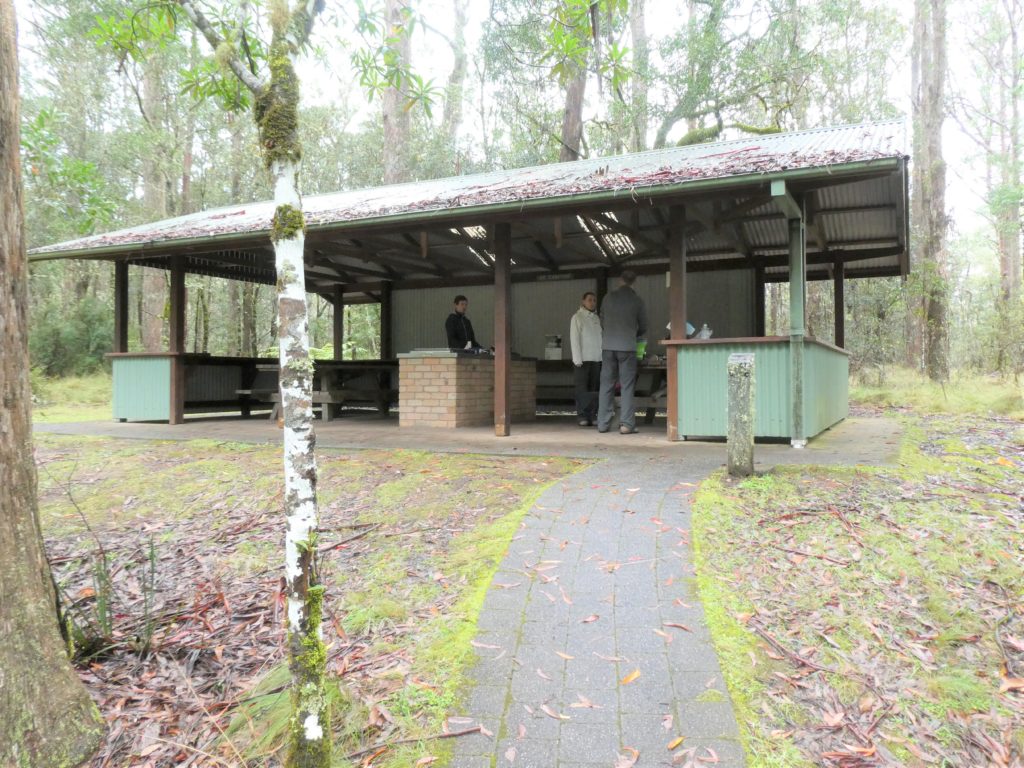 In the morning, D’n’M found some water in the tent but it was not too bad. I had been awake often because of feeling cold and whenever I was not too lazy, I put on some additional clothes, but still I could not sleep the last few hours. There was no reason to hurry but we were glad that we already had packed the tent when again rain started. There was a big shelter for cooking, and we gathered there and even could use the gas cooker there.