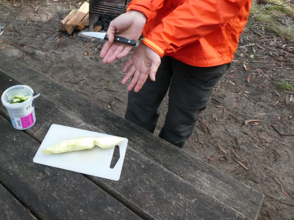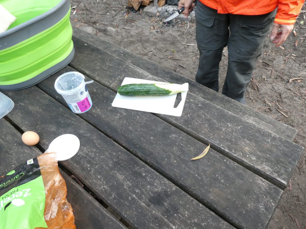 We made breakfast but ate standing, because it was too wet and cold to sit down.