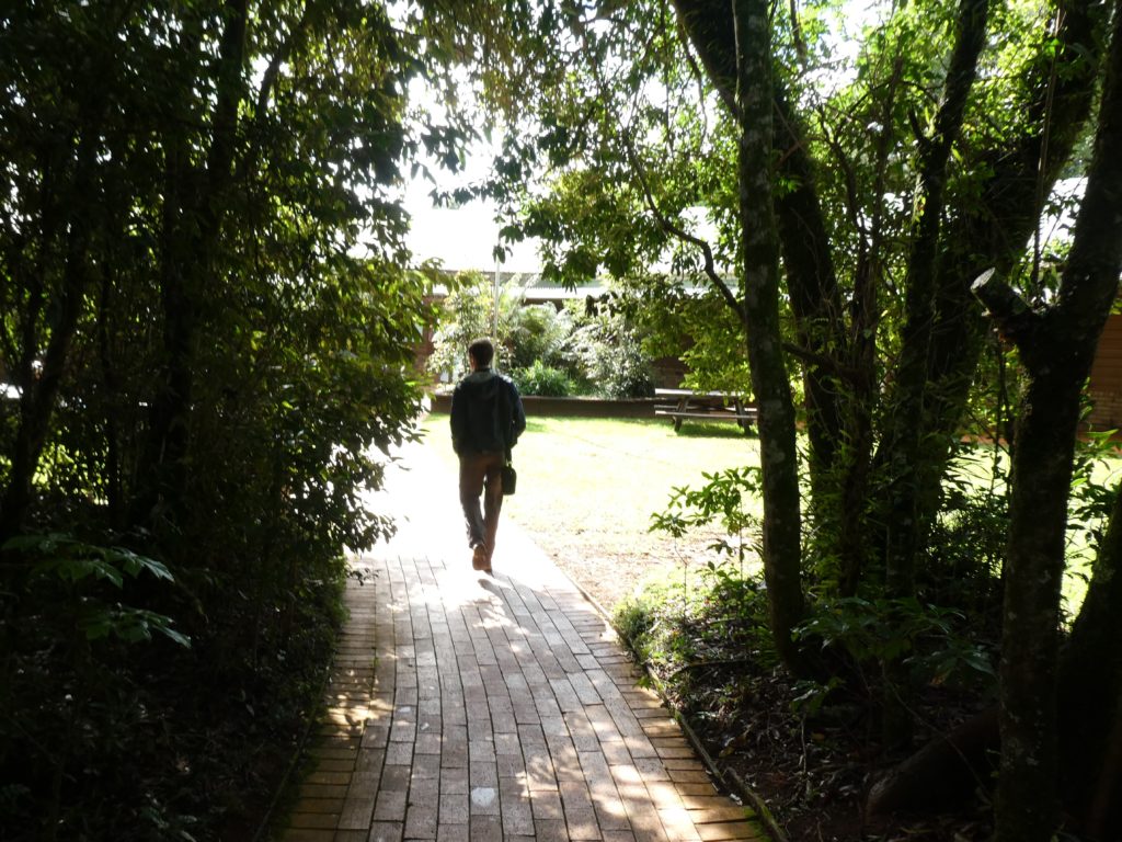 At 14:00 we arrived in Bellingen to check in in the YHA Belfry Guesthouse but we had to wait for that an hour, so we made a walk, seeing the “hip” center of the town, even finding a chocolate store (they had Milka and Mozartkugeln, too, but we were looking for Australian political correct chocolate what is not easy to find, because everything in the world is dominated by Nestlé, Mondelez and the like) and set down in a coffee for a while. After check-in in the hostel, M&M went to a laundry and D’n’M used their internet connection to digitally unite with friends. I was excited, because Lulu now stays with Arash & family and sent me a selfie with Negin. We had dinner to a restaurant called Za’atar with middle Eastern kitchen and Reggae music and finished the evening in a brewery with Salsa music.