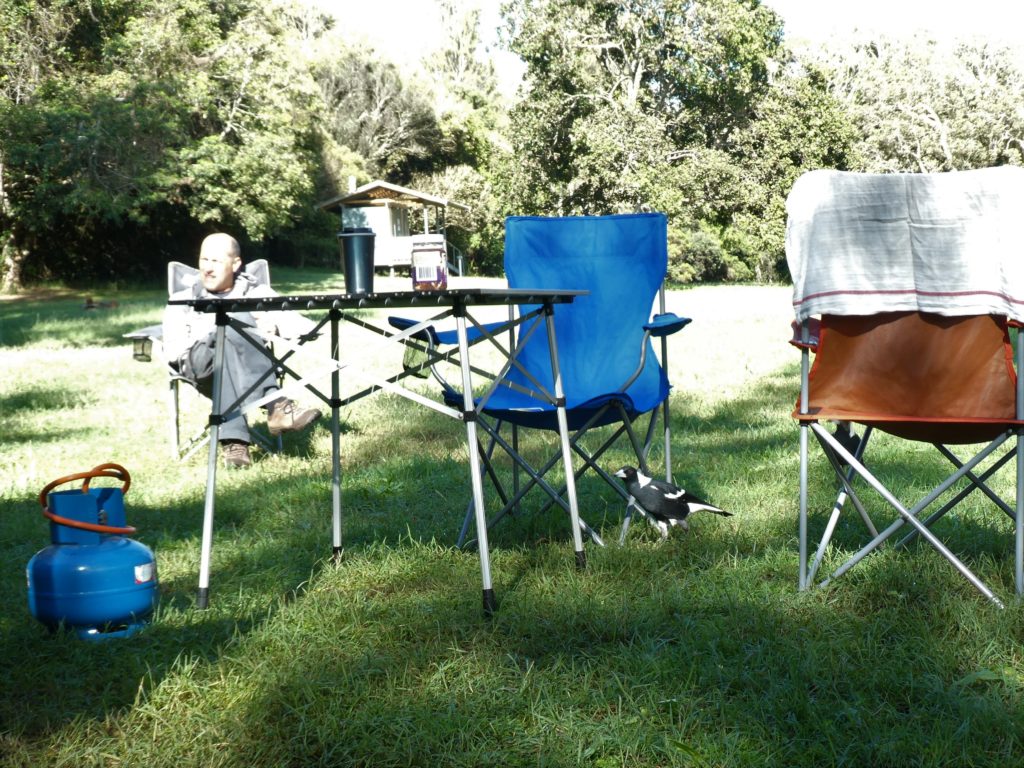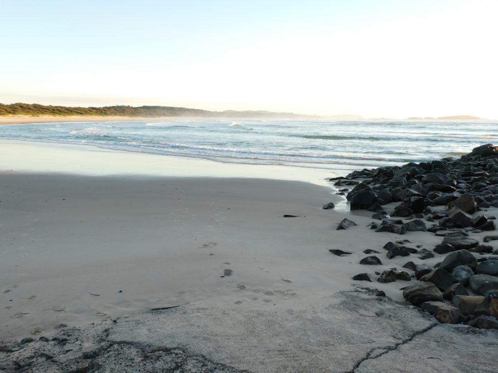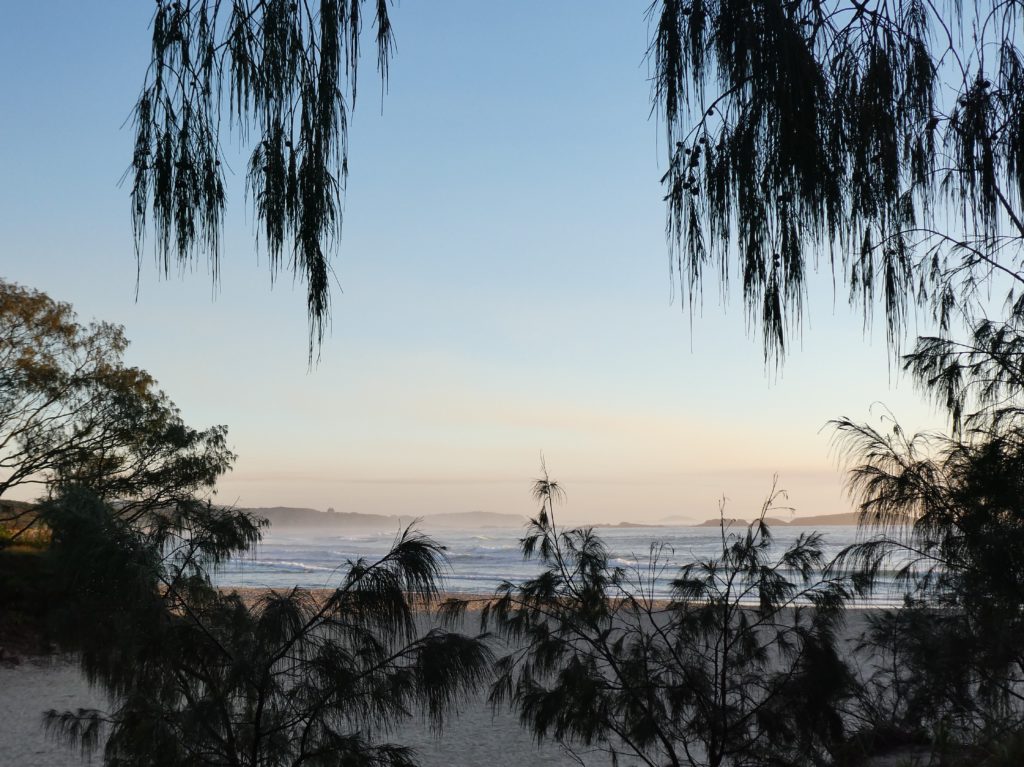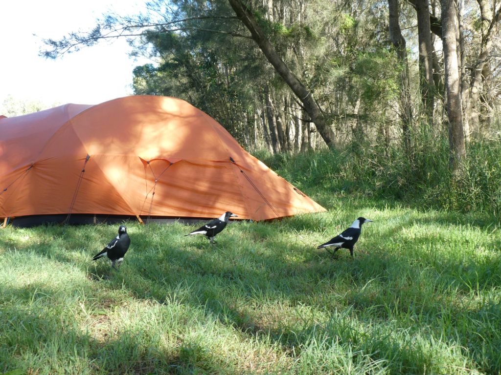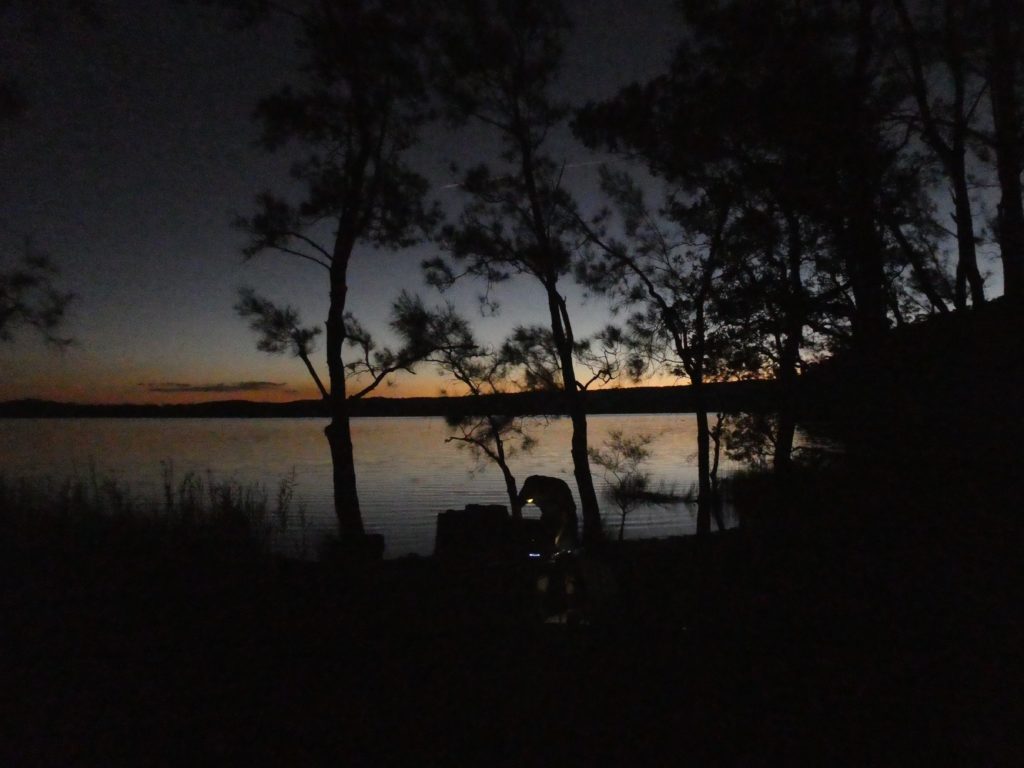 and then we left for our last camping night in the Myall Lakes National Park, the Bungaree Campsite. M&M had been there several time and it was a good surprise that only two cars were there. We had a place directly at the lake and the lake sometimes sent waves of warm air and sometimes waves of bad smell or a combination of both. It is a saltwater lake only sometimes flooded by the ocean and by that a special habitat. But besides the last moments of daylight that we could enjoy watching the lake and dawning, we were occupied with star gazing and bat-spotting. Sometimes the wind howled in the high trees and all in all it had a mysterious atmosphere, only brought a bit down to earth by some loud neighbours who apparently had a different approach to nature and calm evenings.