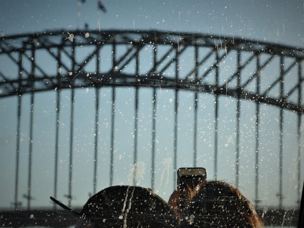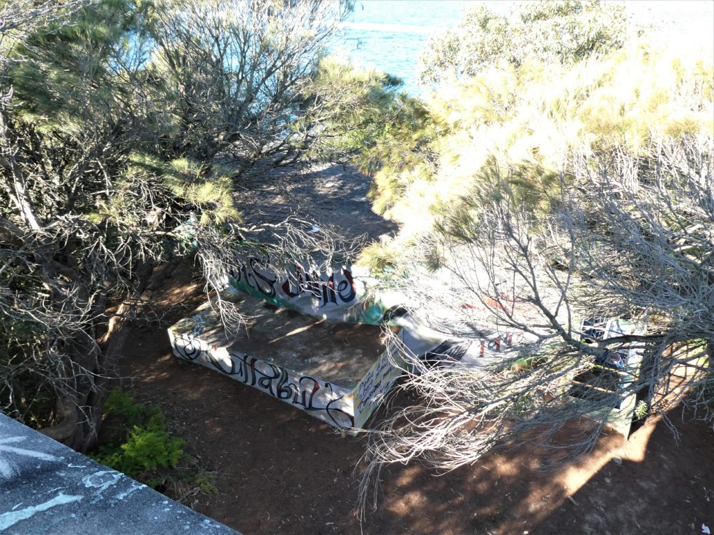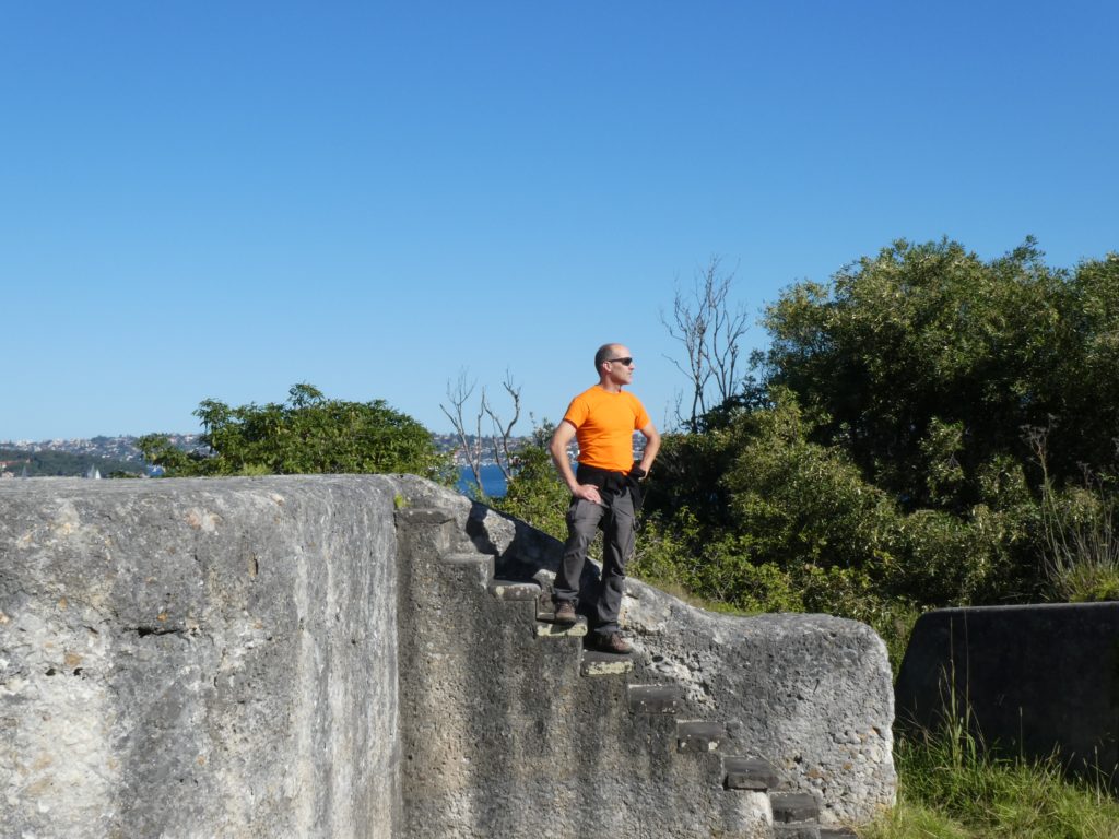 In the morning, I put my SIM card in my “spare part-phone” and then it worked, and I could do the booking for the bus. M&M had a painting session (and I didn’t participate because I didn’t want to get white color on either of my few clothes). Then we went for a last Sunday walk to the Headland Park. At Middle Head, you find fortifications from late 19th century and later and of course they offer a good over the harbour area that they were meant to protect.