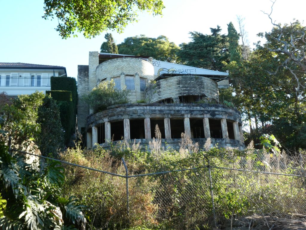 When you walk on, in  the Sydney Harbour National Park, you find more of those buildings, some with murals.