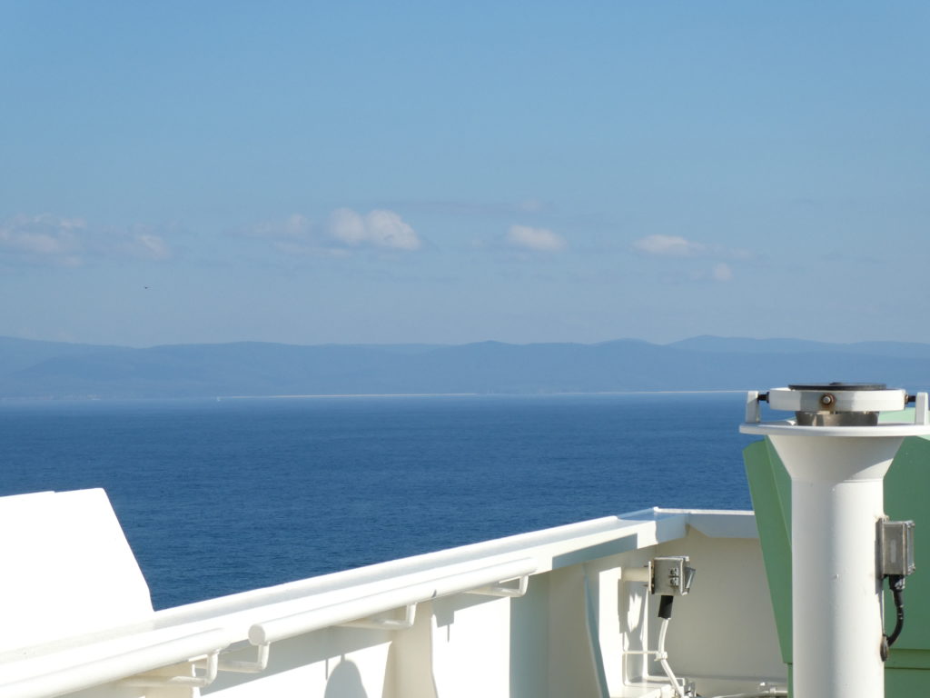 At the gym, I had started my running program yesterday and wanted to cycle today, but the batteries are gone, so my complicated system of increasing tempo and duration is difficult to monitor. But I found a personal scale, stepped on it and saw something like 5kg over my original weight before leaving Vienna. This is more than I can lose during cycling those 1400km back home and no wonder after being so lazy the last weeks and eating lots, especially chocolate. Since I entered the ship, I hadn’t eaten any chocolate, but still always a lot. This lunch, I wanted to eat less, but the bosun brought an extra plate with rice and I feared he would throw the rest if it seems too little to keep it, so I again ate more than I needed and even 4 hours later felt very full (2 hours before dinner…) But I will try to eat less from now on and maybe in combination with some exercise I can get rid of 1 kg on during this trip, 1-2 until reaching France and the rest until being back in Vienna. Normally, I have a tolerance of 1-2kg, before eating less chocolate and other sweet stuff and when it is 3+, I become stricter, but in general, I still eat when I am hungry. Now I would try to reduce in general, but mainly in the evening, (like at home, when I normally don’t eat after lunch) and in the morning, I want to skip the less healthy stuff, like white bread, jam, Nutella, crepes.