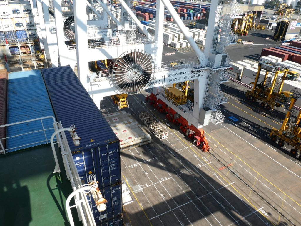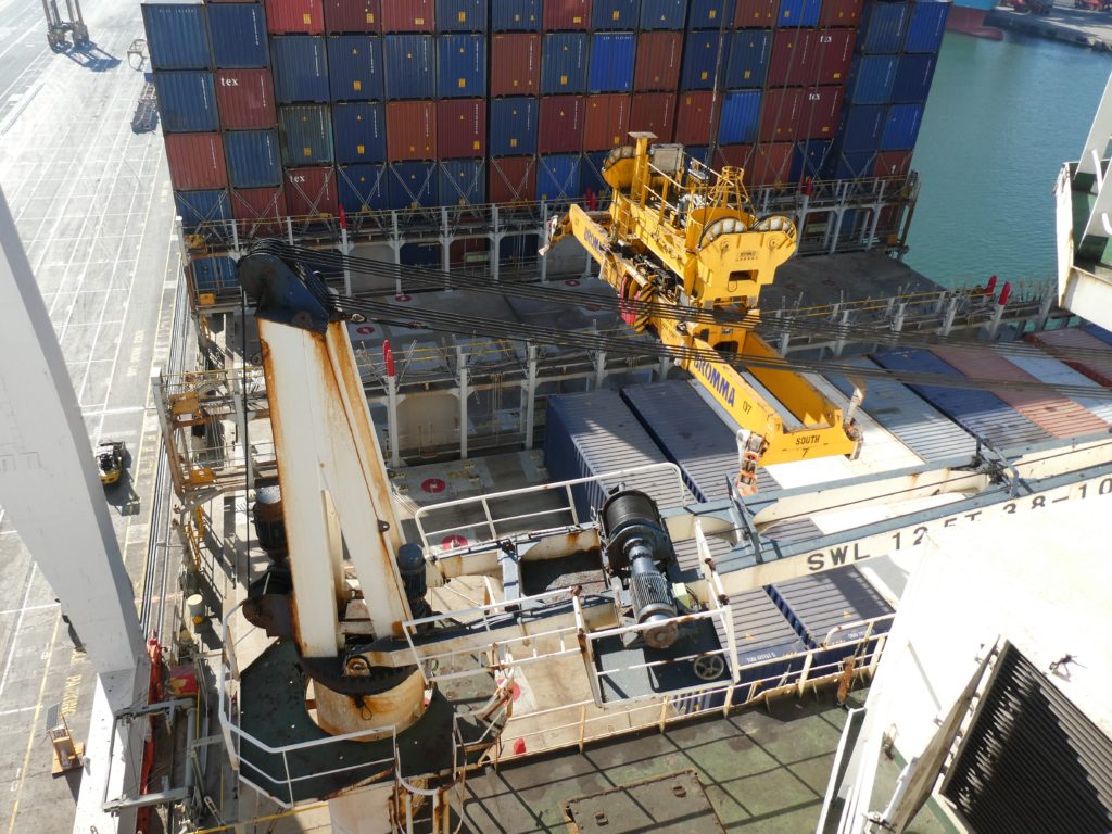 and now some cargo loading photos. I saw a bit more than on my last two trips, for example that on upper deck level, they put big panels after filling up the belly of the ship with 10 layers of containers.