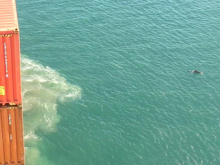 for humans, the ship’s propeller can be a deadly trap, but I guess a dolphin can deal with its sucking stream