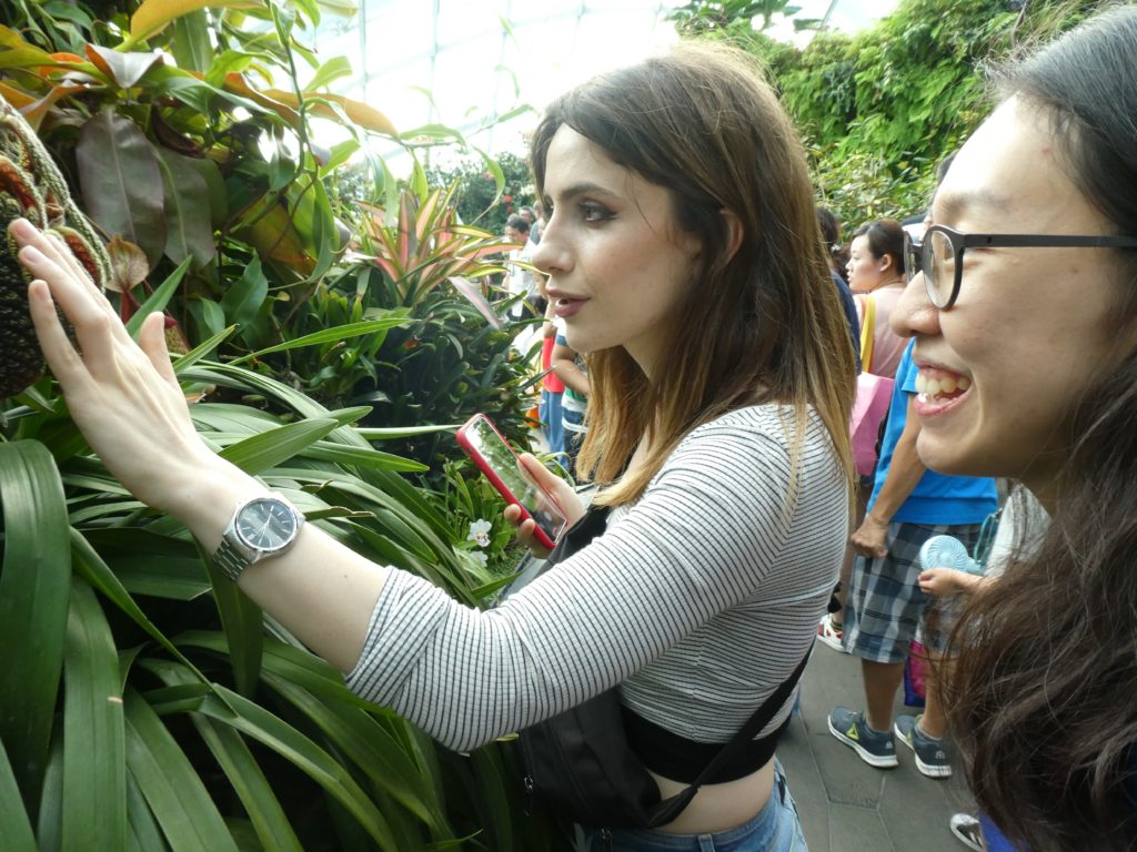 It is not only big it has a great design and many people tried to get good photos. At 15:00, Lulu came and brought us to the gardens at the bay where we locked Hasmik’s luggage and entered the exhibitions of the cloud forest and flower dome.