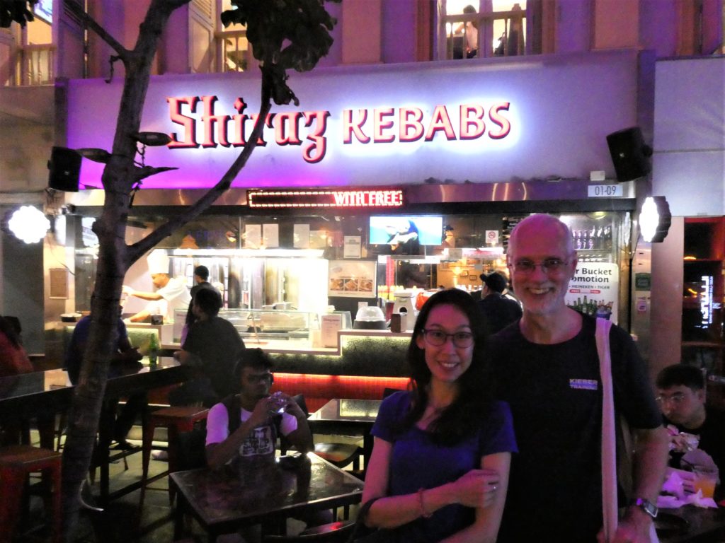 He went back to the gardens at the bay to get Hasmik’s luggage from the locker while we explored some crowded streets. We bought a leaf with some sweet spices on it and soon I remembered that taste, it was betel nut. The next challenge would have been to go to a barber, but there were too many customers waiting, so we went on and came to a house with many men waiting and a woman opening a iron gate and letting one in, the other men waiting for their time. Hasmik asked a man to double-check the obvious and he said they are waiting for a bad woman or some bad women. Maybe the question is, if those women are bad, what about the men waiting there and paying? Darren came, and he completed the day with a sight seeing tour through the finance district of Singapore before he brought us to the hotel. Hasmik rehearsed “her” part of the Bürgschaft, but although it was perfect, she wanted to continue practising before recording it. We stopped talking, because after this long day it was time for a rest. I ate another portion of “sea”-food that still was a bit cooled and ok to eat. On part was left for breakfast and then my ship food saving mission would be completed.