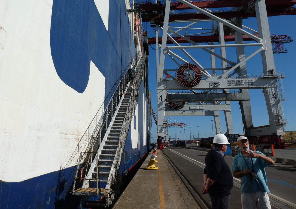 After breakfast, Jean Marc and I exchanged our helicopter videos, then we finished packing and went down saying good bye to the crew and the remaining passengers, Jochen and Graham. A taxi should bring us to the port entry but we waited for a while and then I decided to go on my own by bike, a truck driver showed me the way and it was easy to leave.