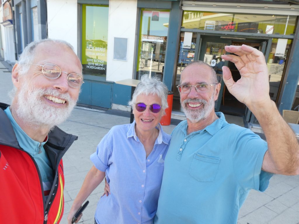 After a while, I remembered that the map for Europe might be deactivated and it was. But now I only saw the map without any route, only the message that I am off the route. But at least I arrived in Dunkirk and came to the train station. And there, I saw Marie and Jean Marc again ?. They had seen me before somewhere on the road and 2min before Marc had written and SMS that I wanted to read when I stop, but then we met anyway.