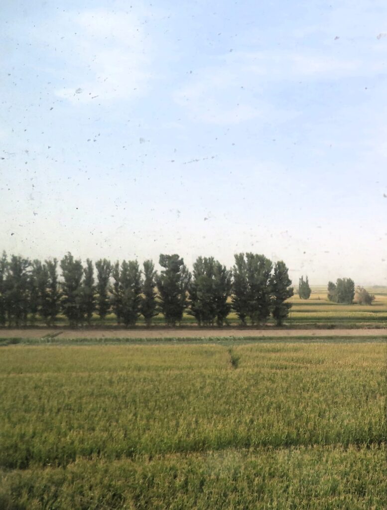 The landscape had barely changed in the past nine hours. Every time it started to get a little green, it soon returned to rocky desert. But now it seems to be done, with trees appearing and even some farmland.