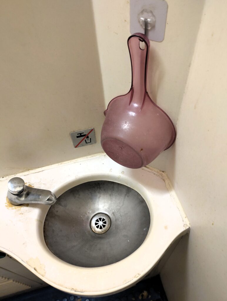 There were some objects that were a mystery to me. One of them was a ladle, and since I couldn’t find any other way to flush, except—perhaps—a pair of long tongs leaning in the corner that reminded me of a fire pit (but: how? And: why?), I tried the ladle. Let’s just say it didn’t work. I was about to give up and go to my official friend to ruin my reputation completely when I found the saving button where I wasn’t expecting it, and off I went.