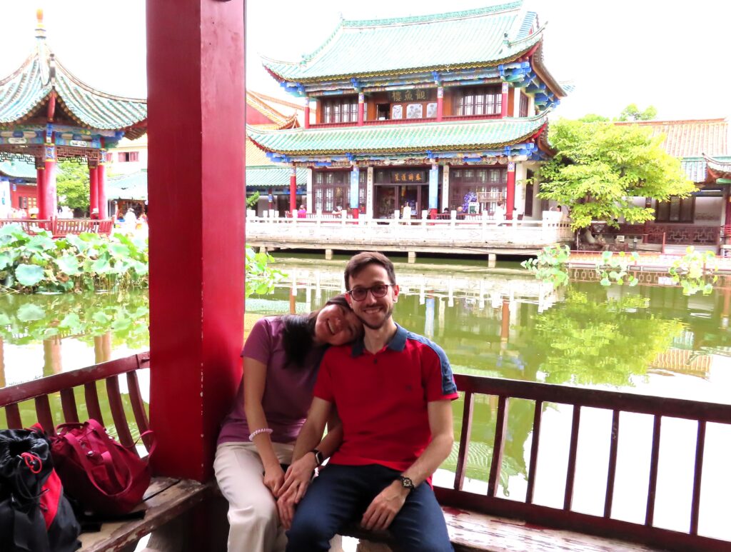 We ate hot soup in very hot pots and were given plates with various dishes we could add, alltogether called “bridge rice noodles”. Efan told us a nice story about the invention of this dish, and I hope I made a decent video clip of it. (later on youtube, only with link)