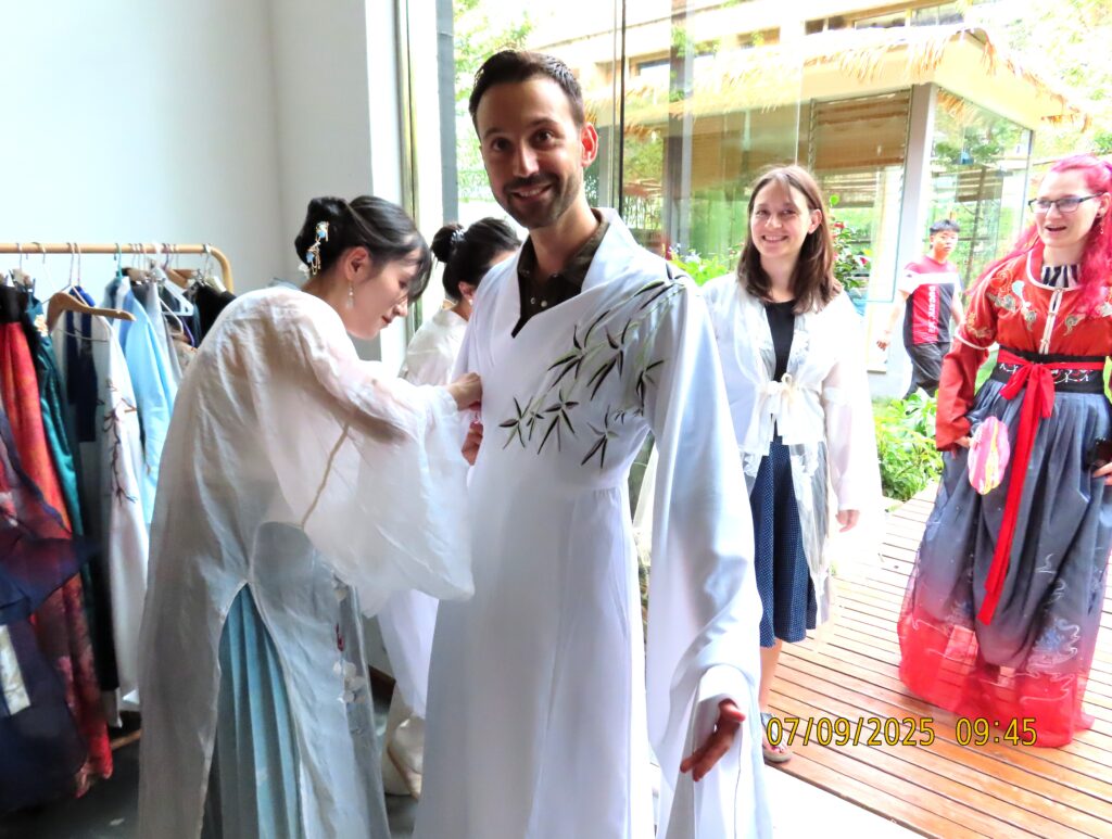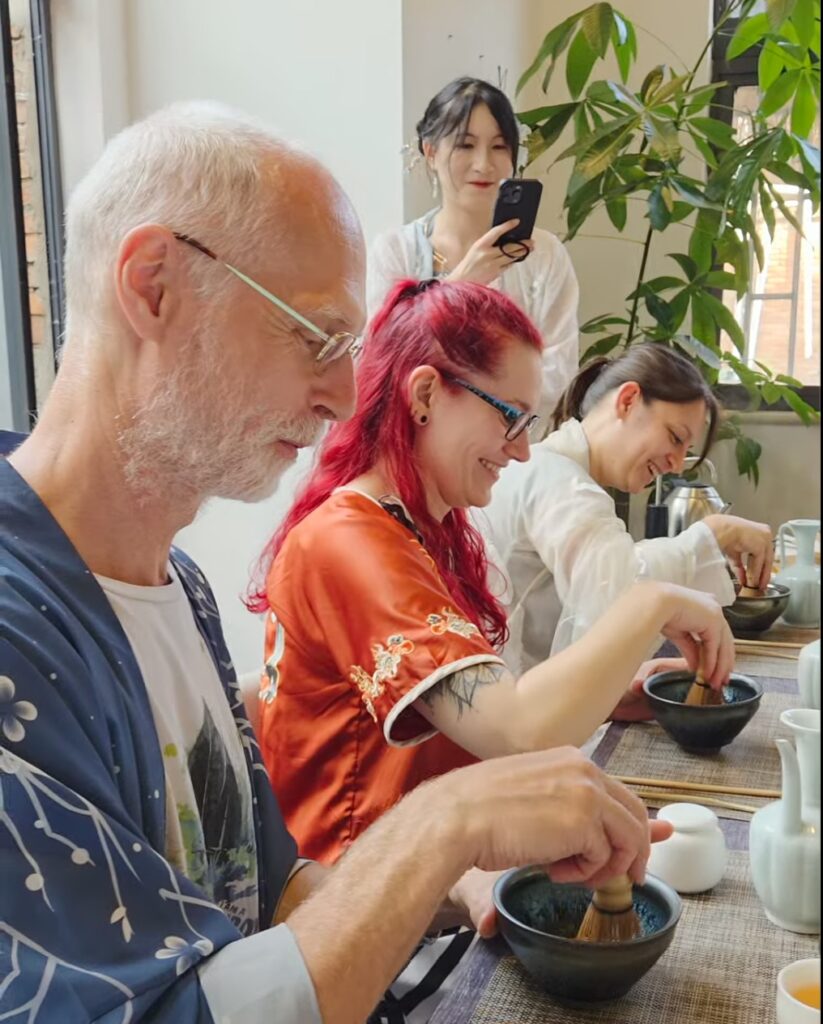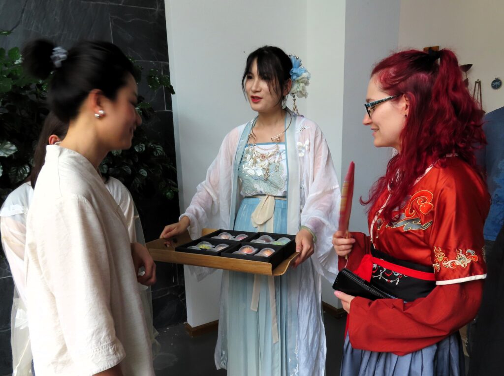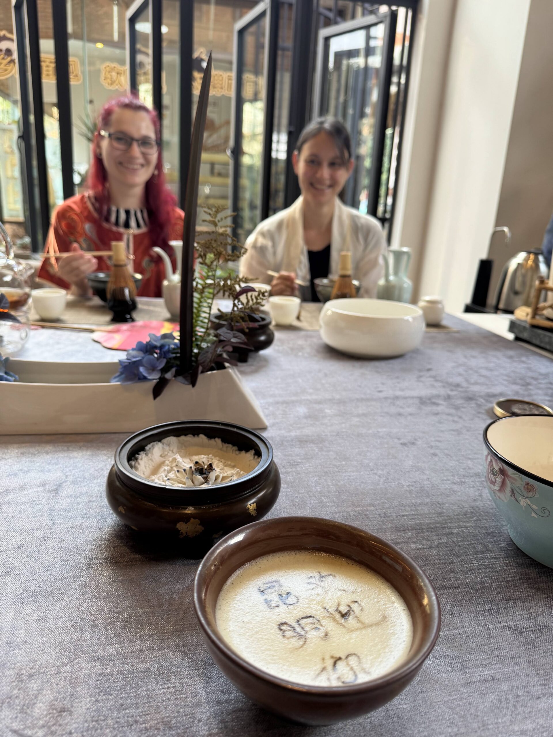 First, we experienced a very interesting tea ceremony with many explanations translated by Efan. We dressed up and learned about the history, culture, and variations of the tea ceremony, but then the difficult part began: