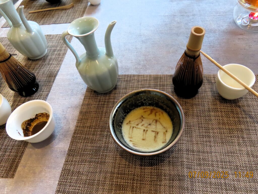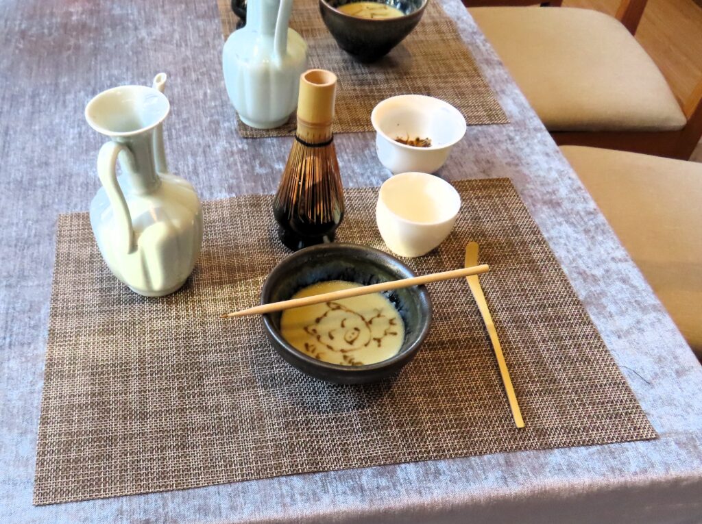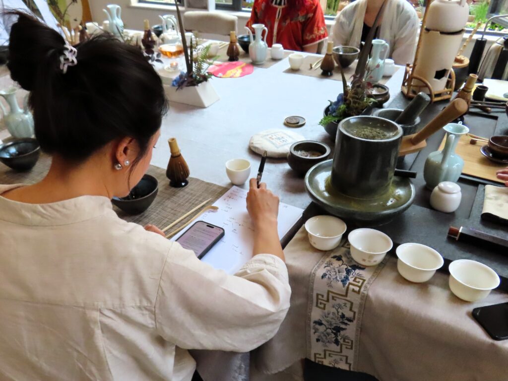 Basically, it involves stirring ground tea leaves with water and then creating a white foam that you can write on.