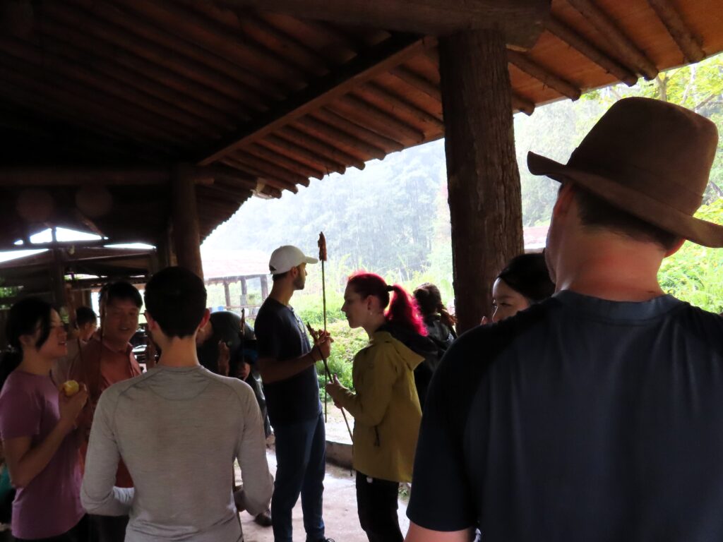 Then the aforementioned rain caught up with us, but before we got really wet, we got into the cars and were driven to a place where we were greeted with skewers of meat.
