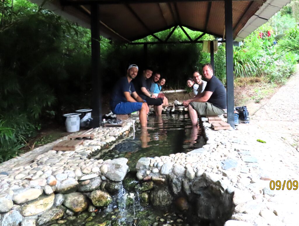 We still had some time to enjoy a warm spring bath (up to our knees) before heading home, stopping at a combination supermarket, billiards hall, and other entertainment venues. Four guys spontaneously decided to stay a while longer (with a driver), while the rest went home, some straight to their rooms after this full day.
