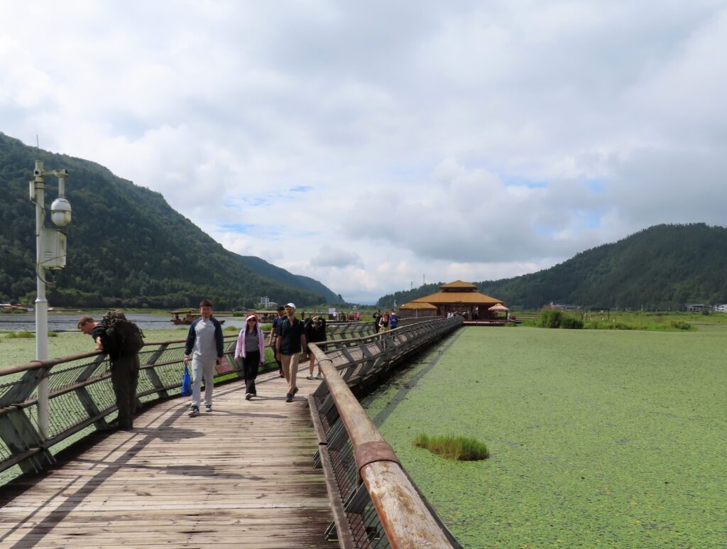 Surrounded by beautiful mountains, Beihai wetland is a marsh wetland filled with many rare plants. The reserve features a “floating blanket style” marsh. Numerous lush water plants are interwoven and are continuously thriving. Day after day, year after year, old plants decompose and new plants sprout, finally becoming 1-2-meter thick meadows, like small grass islands floating above the water.”