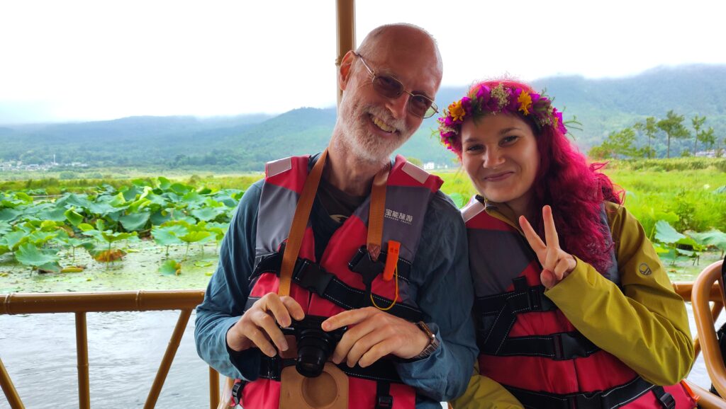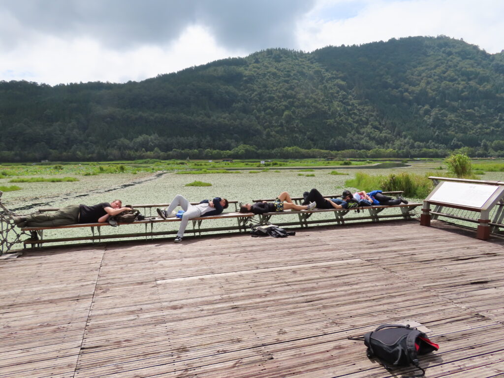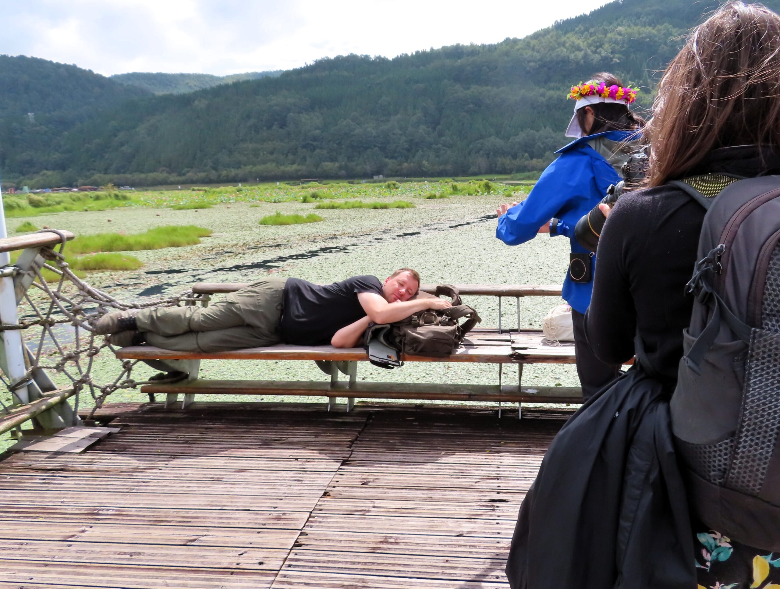 We had breakfast with dumplings filled with various ingredients (I loved shiitake mushrooms and red beans filling) and arrived at the wetlands. They resemble a lake but are mostly covered with aquatic plants ranging from floating grass to lotus.