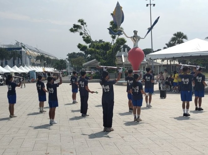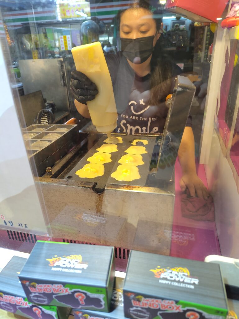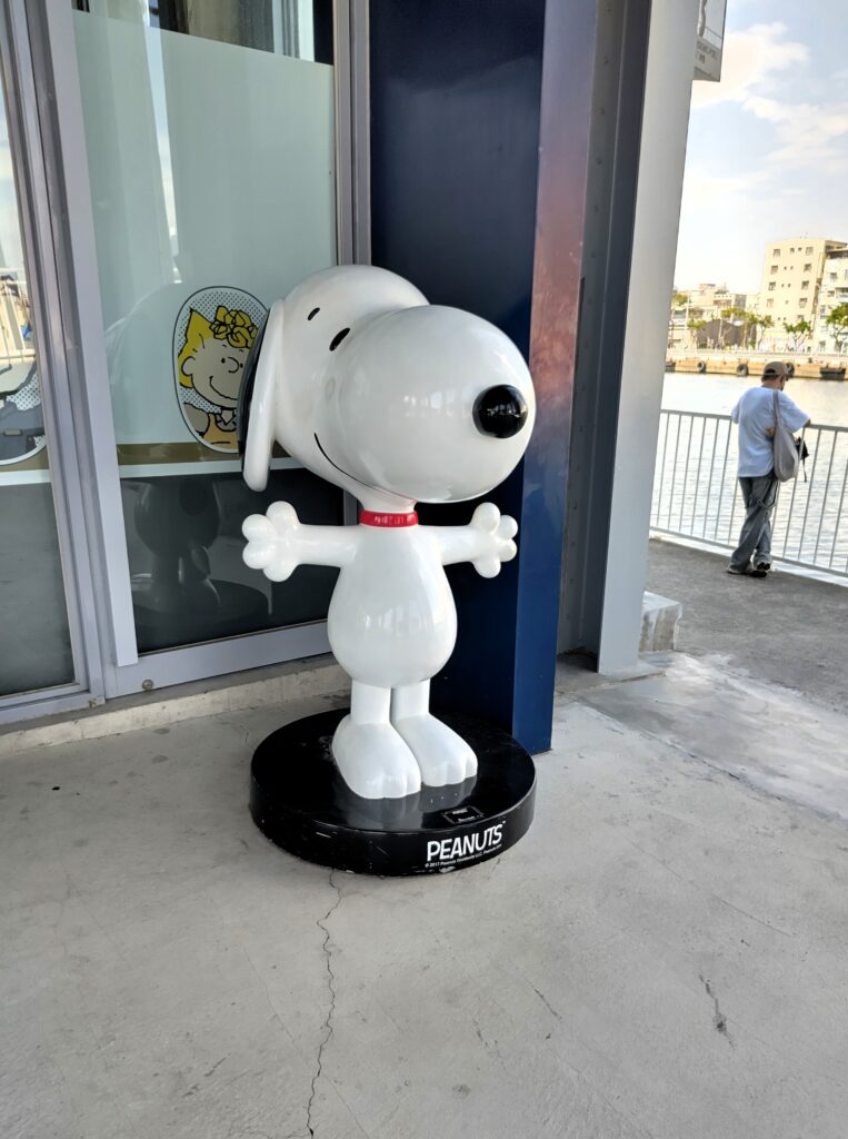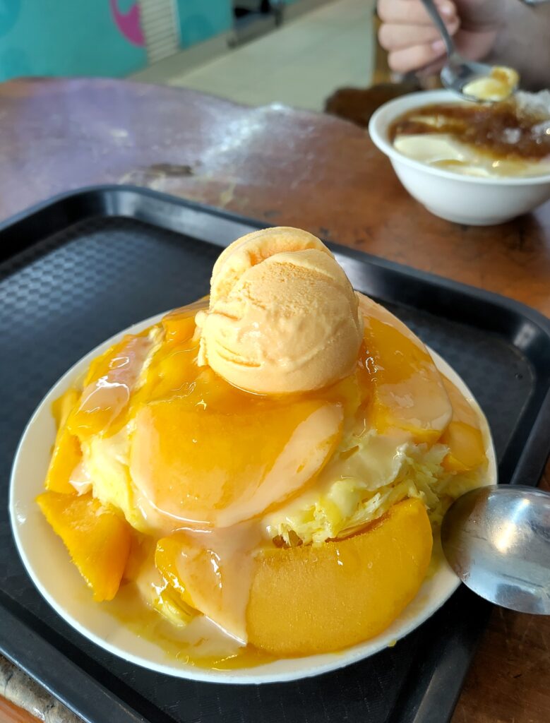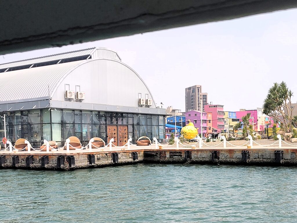 Mark showed me the university, we took a ferry to Cijin, a fairly touristy place, and first had dessert (since 2015, I’ve been dreaming about the mango sticky rice I had with Mark and Angel somewhere in the south; this time, at least, it was mango ice cream), then lunch before we headed back to the bridge, stopping off at an exhibition along the way.