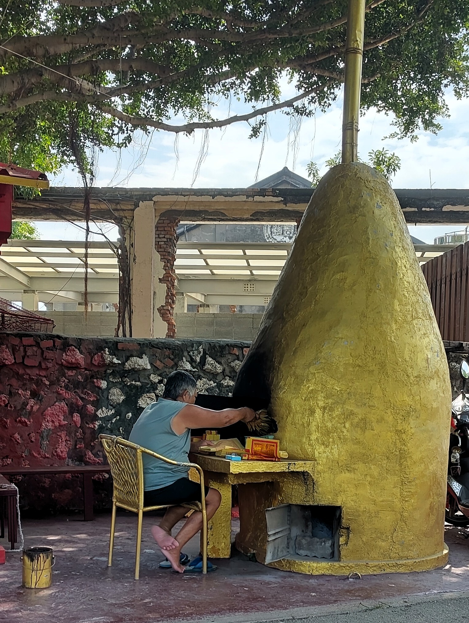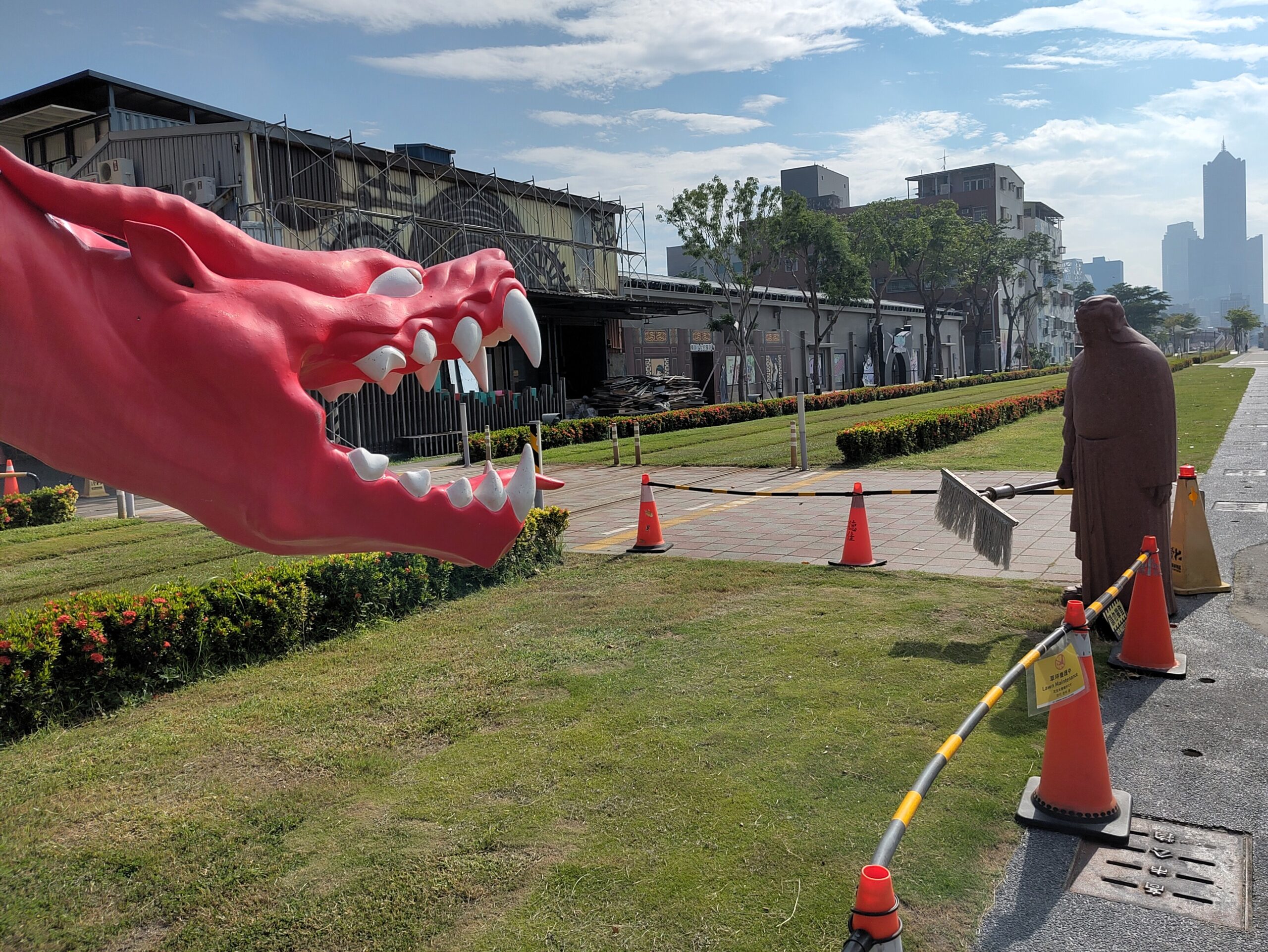 Mark showed me the university, we took a ferry to Cijin, a fairly touristy place, and first had dessert (since 2015, I’ve been dreaming about the mango sticky rice I had with Mark and Angel somewhere in the south; this time, at least, it was mango ice cream), then lunch before we headed back to the bridge, stopping off at an exhibition along the way.