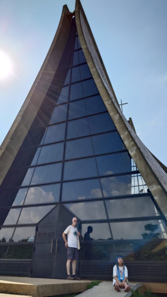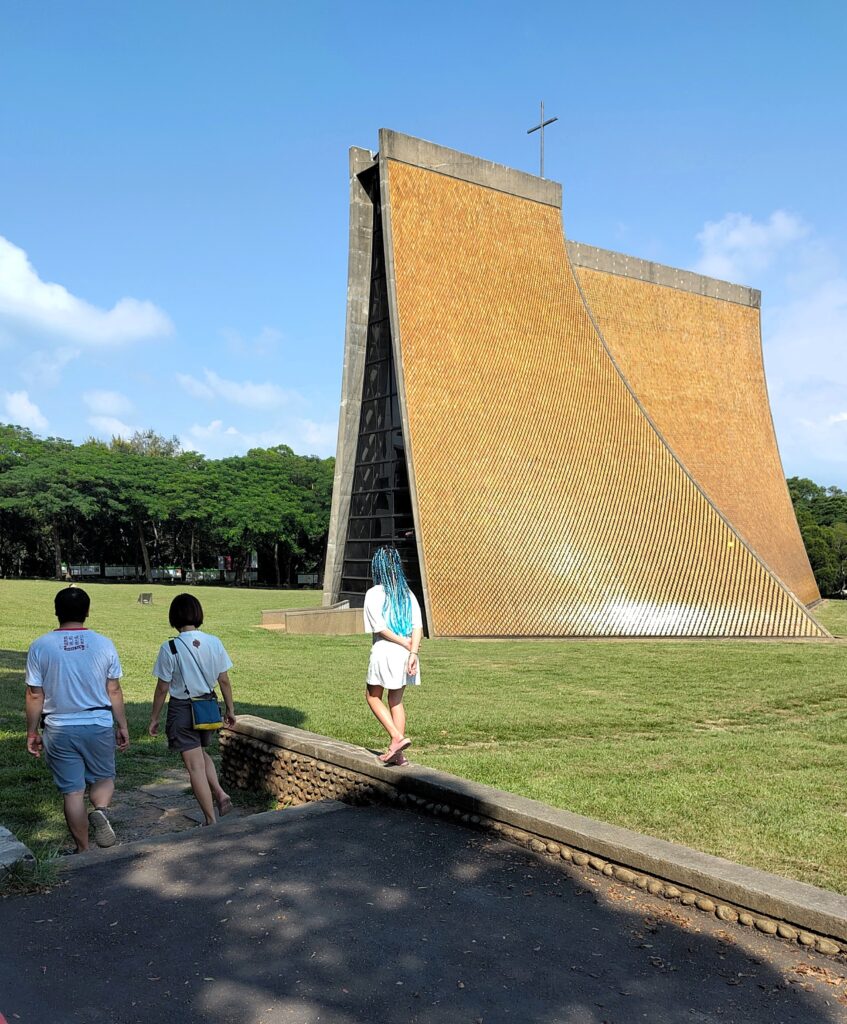 Afterwards, we explored the campus of Tunghai University, where Amy had studied languages. This campus is also huge! Interestingly, there are cows there, so you can buy their own yogurt, and a Catholic church, the Luce Memorial Chapel (designed by Japanese architects I.M. Pei and Chi-Kuan Chen in memory of Rev. Henry W. Luce, a 19th-century American missionary). Amy explained that freshmen must stay on campus and clean up. If they fail, they have to continue in their second year.