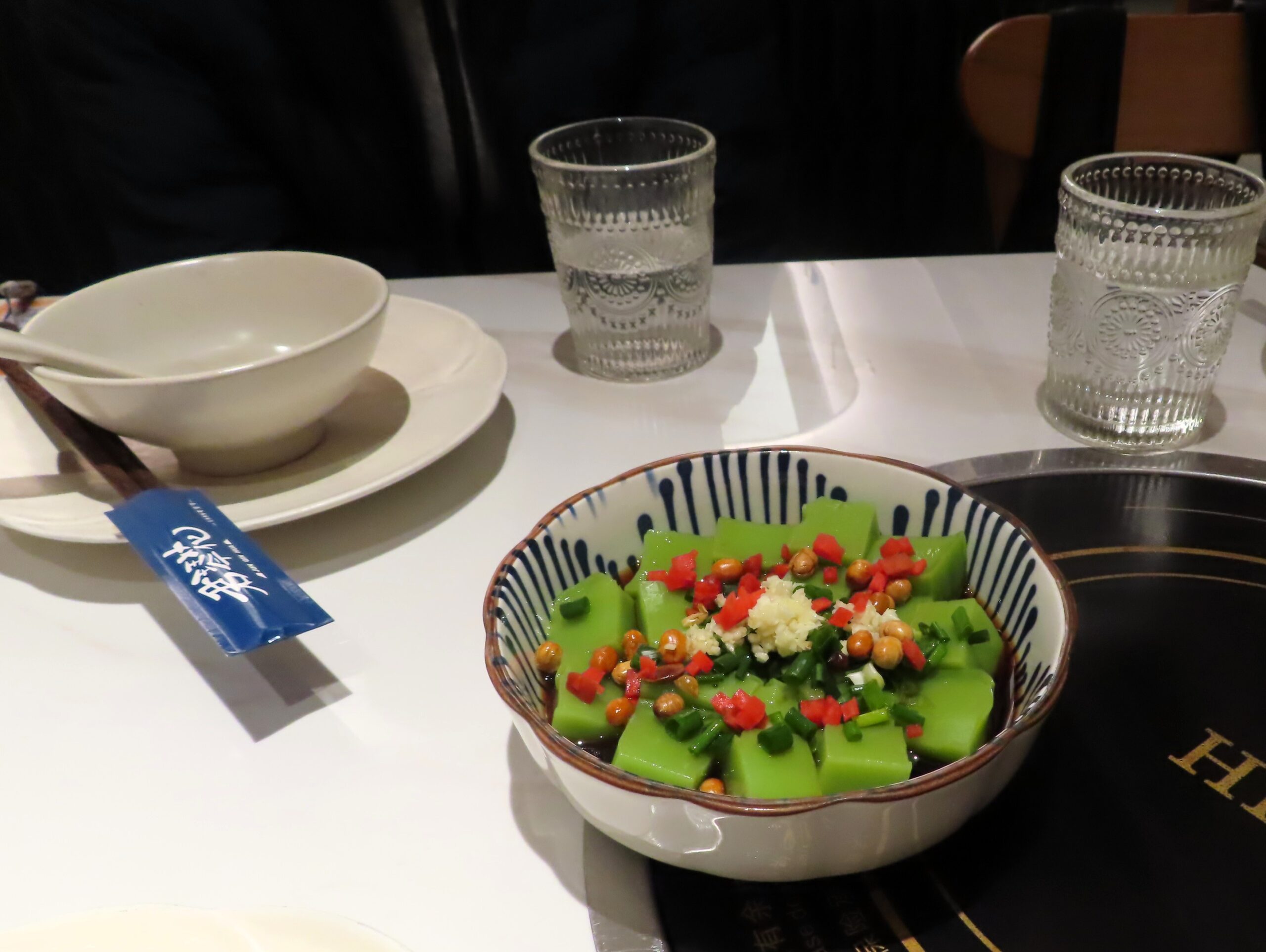 Before that I had tried a glazed fruit I was unfamiliar with: Chinese hawthorn, slightly sour and with five large seeds, which is also used in TCM. The fruits seem to be much larger than what I associate with hawthorn in Austria, about the size of a plum. The glazed version on a stick is called tanghulu.