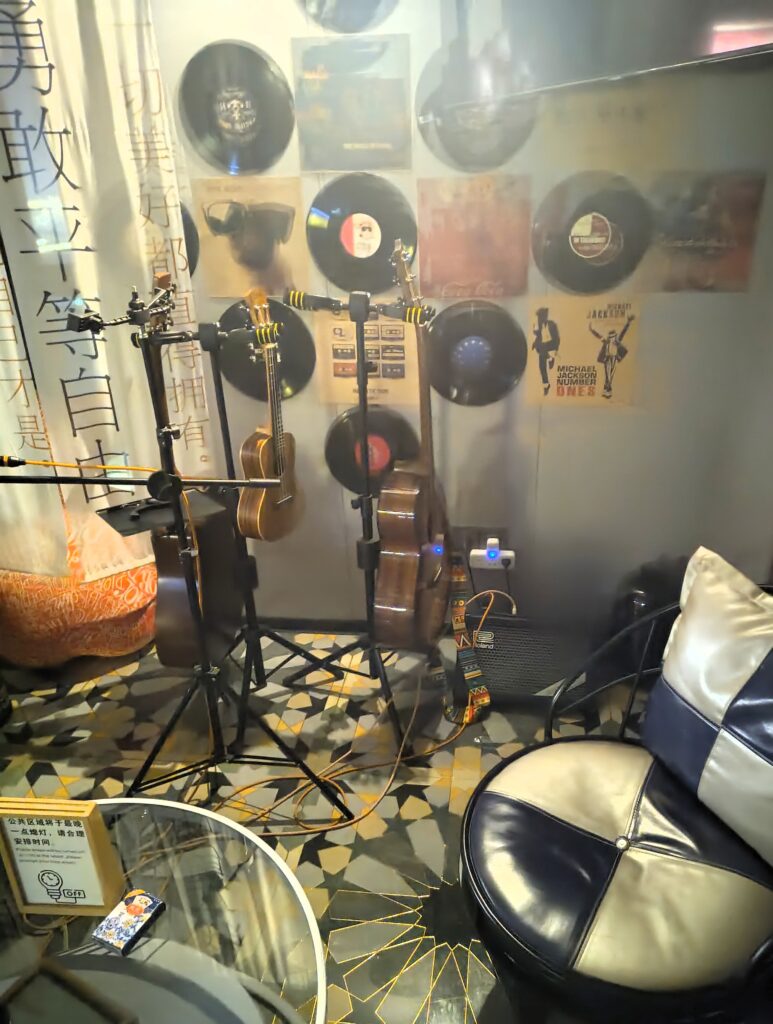 That afternoon, I asked again if the jacket had finally arrived, and the manager also asked. So I pestered Ben again, he sent an updated delivery slip, and the manager called a number. A driver said he’d be there in 30 minutes. I was so relieved that I grabbed the guitar he’d handed me yesterday. I’d been telling my colleague from school how embarrassing it was to be asked to play something from Austria in such a situation, and I just couldn’t think of anything. She suggested “Das Brünnerle,” a simple folk song. Now I sang it, relieved about my jacket. The manager insisted on a microphone, and that’s how I heard how inaccurate my intonation was—I need to practice! (I hadn’t sung in months and also before I wasn’t the best trained singer.)