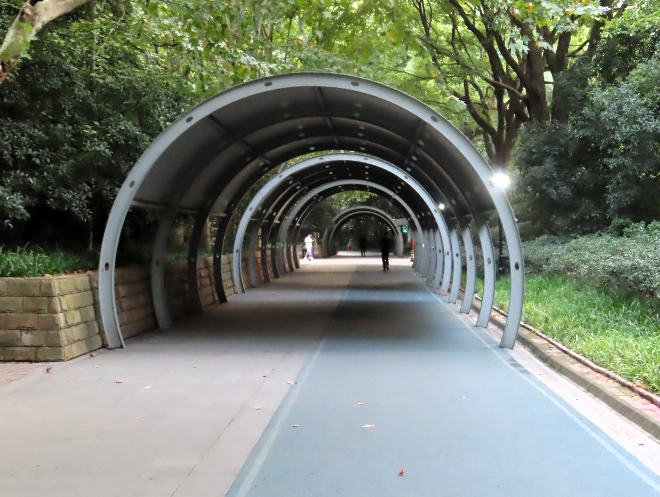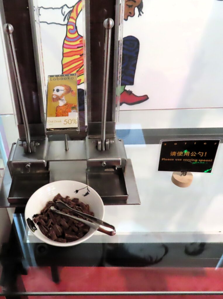 Additionally, there was noodle soup and milk tea. I’d been thirsty before, but the soup was large (and salty) and the tea was a liter. I’d seen that cola, etc., was served in bottles, but with glasses for drinking. So I thought I could get an empty bottle to take the tea with me. Instead, I got a paper cup. Just to be safe and prove how smart I am, I put the cup in one of those plastic bags I always keep when I can’t avoid them.