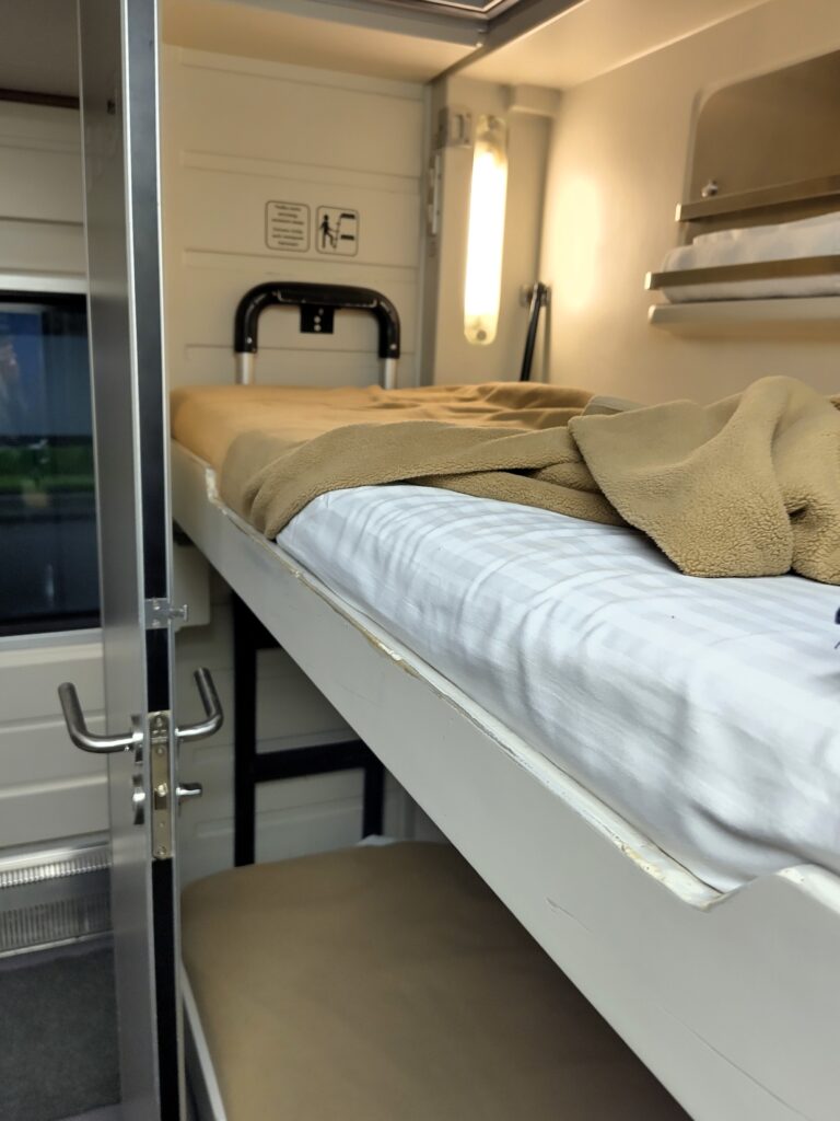 But then an older couple arrived and insisted on the two beds listed on their tickets. I had to change beds again, and the older girls went to another compartment. The youngest shared the remaining bed with her mother.