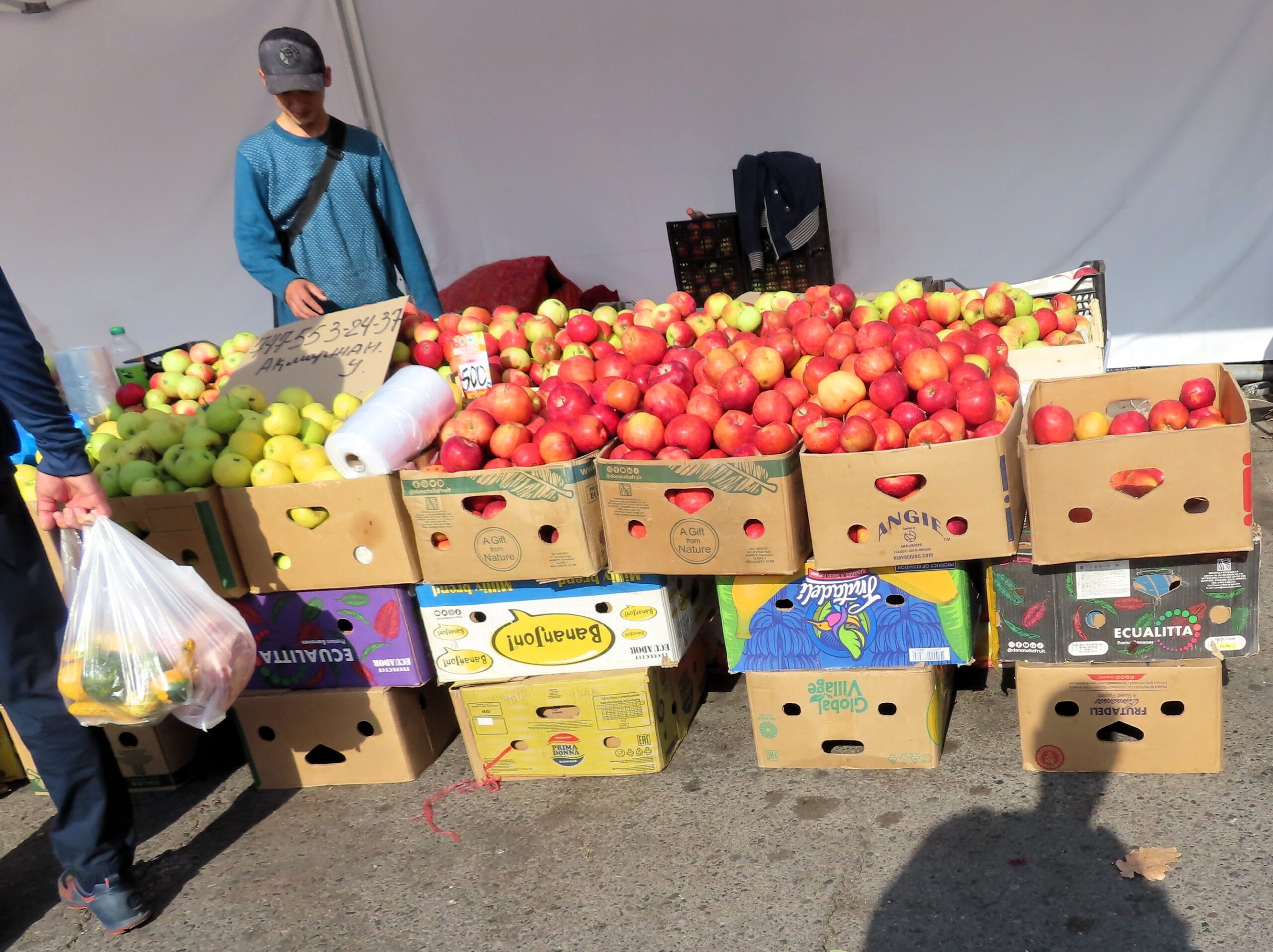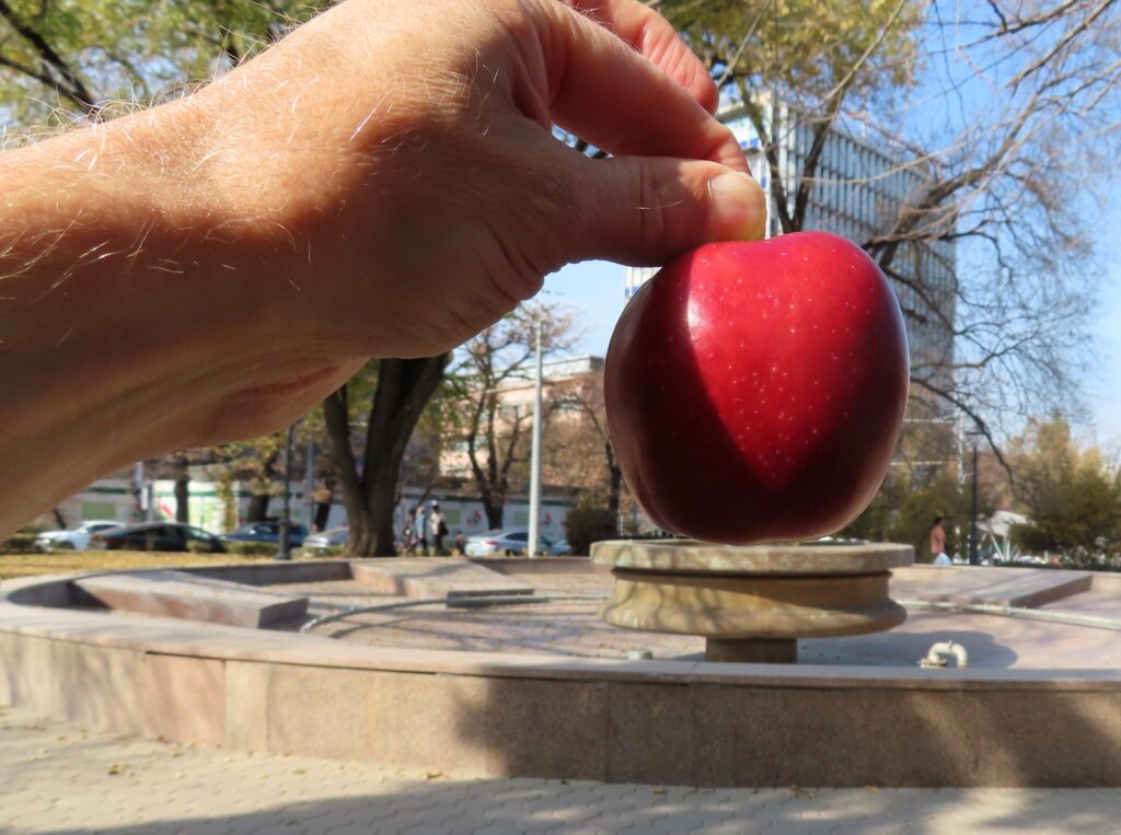 Next, I went to a market—not a real street market, but more like an agricultural fair. My supplies were now too full again. It was important to buy some apples, because Almaty translates as “father of the apple.” The roots of the modern apple may also lie in the Almaty region.